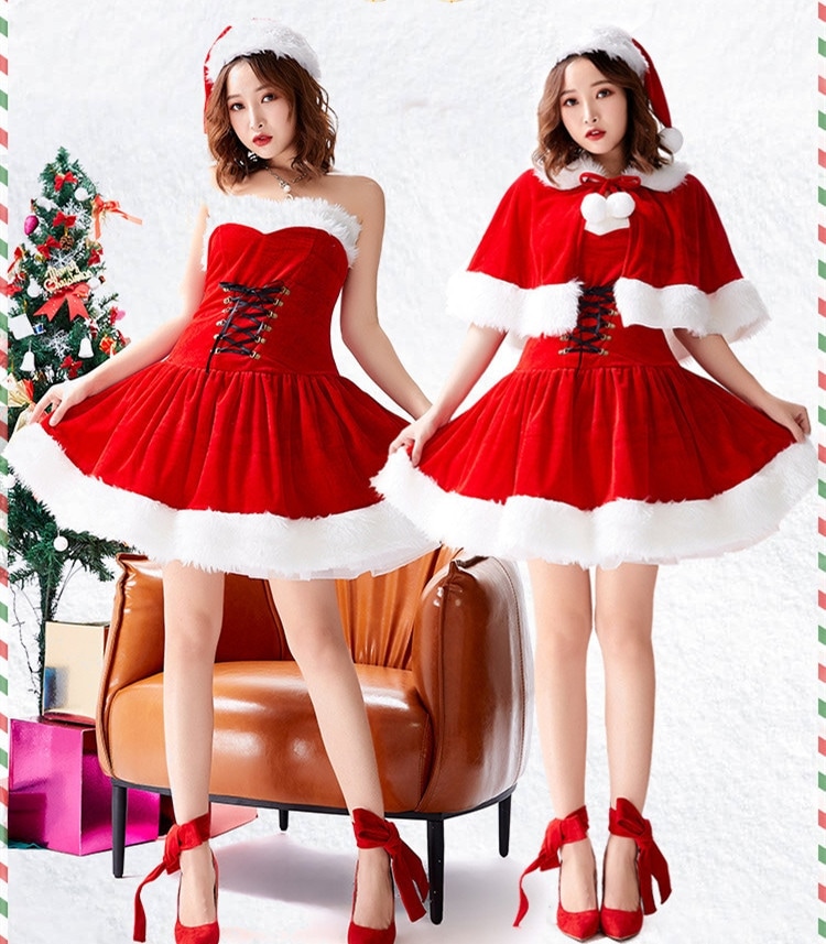 2024クリスマス コスプレ 衣装 仮装3点セット2点セットセットアップサンタ コスプレクリスマス帽子 ドレス ワンピース コスチューム スカートワンピース衣装 可愛い コスチューム年賀状ソフト