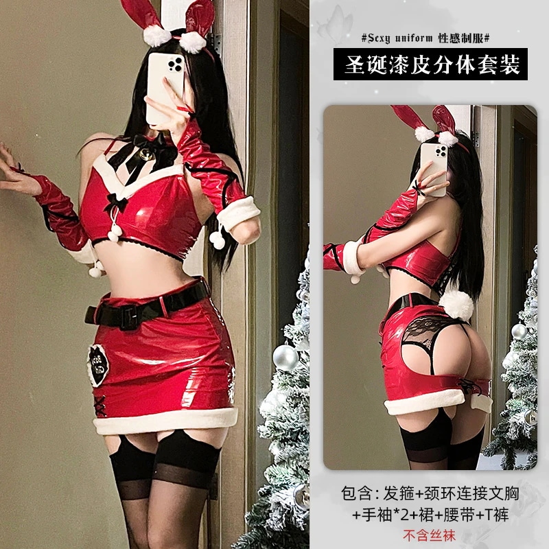 人気サンタコス クリスマス コスプレセクシーななランジェリー タイトなパテントレザー バニーガール制服 情熱的な誘惑 コスチューム ロールプレイ