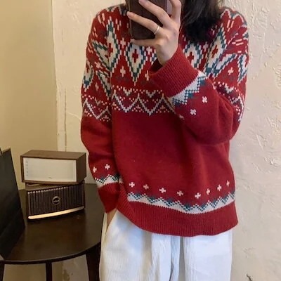 2024新作 長袖 クリスマス レディースニットセーター トップス レディースニットインスタ映え ハイネック 長袖 パーカー 秋冬 暖かい 柔らかい ガールズトーク