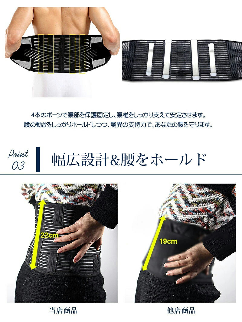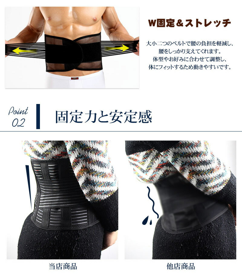 ダブルベルトで装着便利 4本のボンがくの字で腰にフィットしてしっかりホールド スポーツ用品