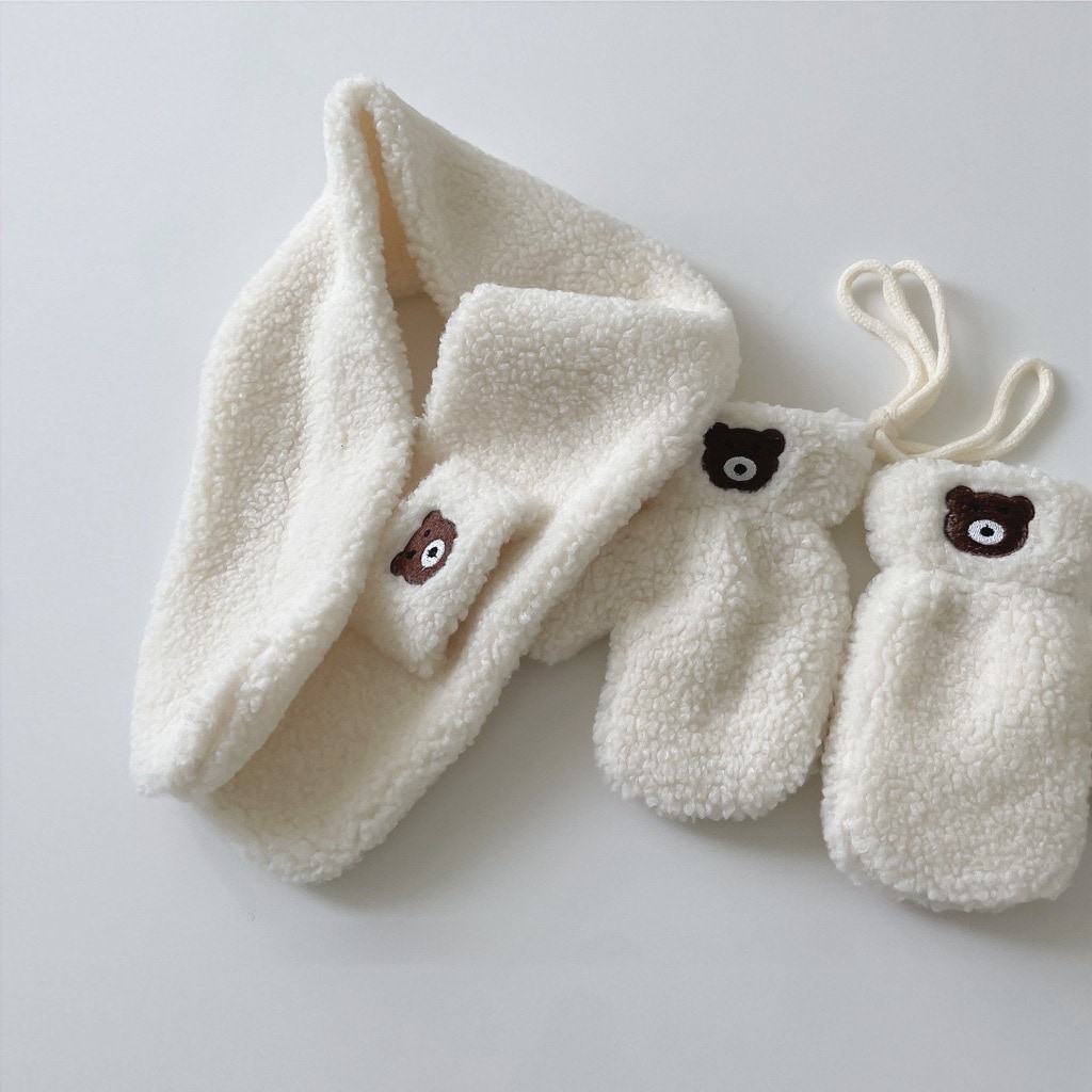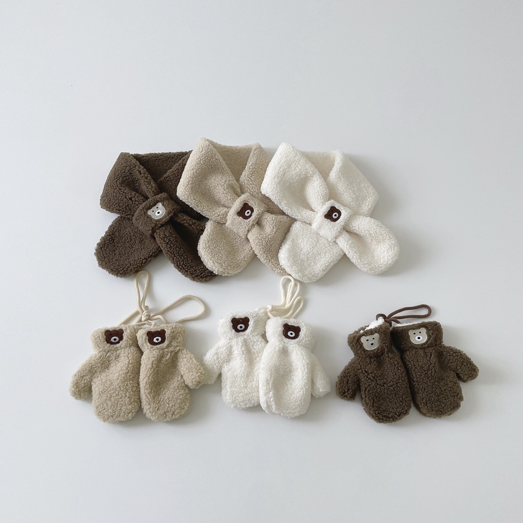 子供用手袋冬2024新型韓国版insキャラクターベアー裏起毛かわいいカイロ手袋 ベビー帽子