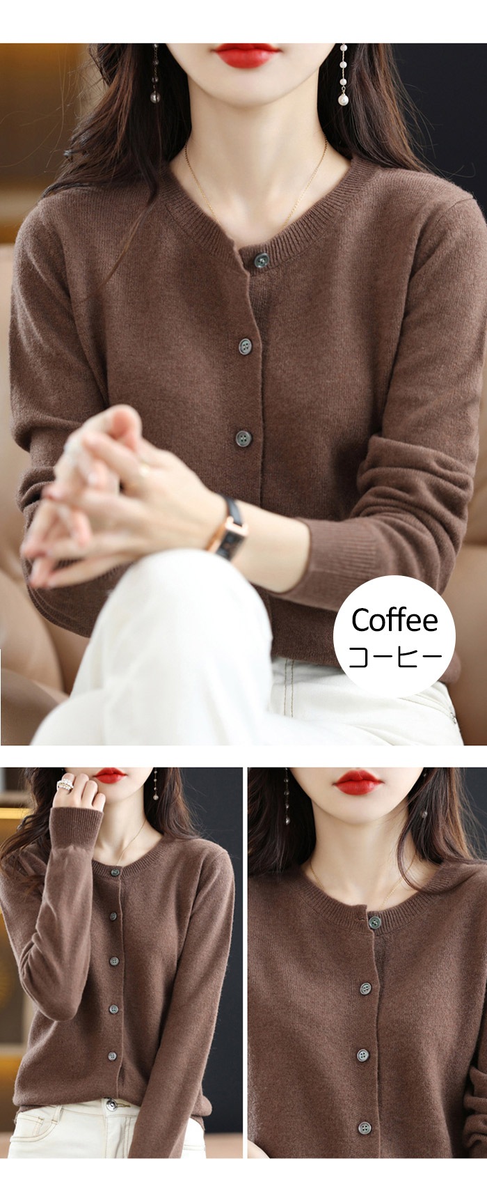 クーポン利用で2 080円 ニット カーディガン レディース 秋 冬 カシミヤタッチ ニットカーディ トップス ベーシック クルーネック 羽織り ニット セーター 柔らか ゆったり 大きいサイズ ミ