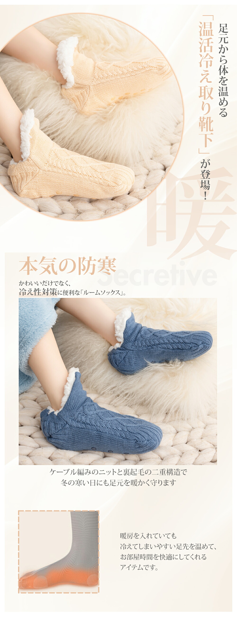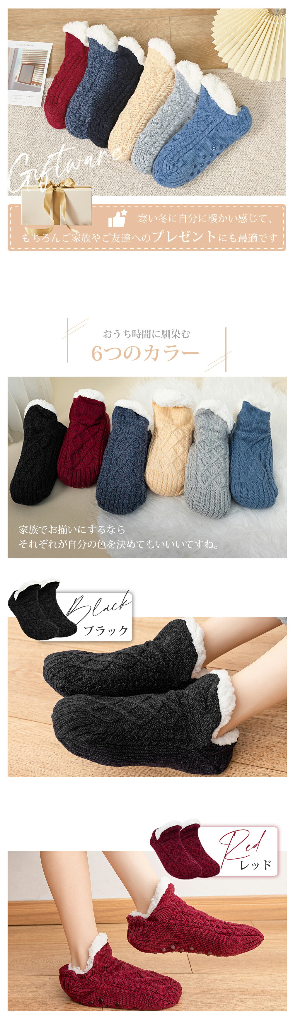 ルームソックス レディース 裏ボア あったか靴下 暖かい 温かい 防寒 冬 滑り止め 靴下 秋冬防寒ソックス 男女兼用22.5~29cm あったかソックス もこもこ 靴下 裏ボア 靴下 温活 ソックス