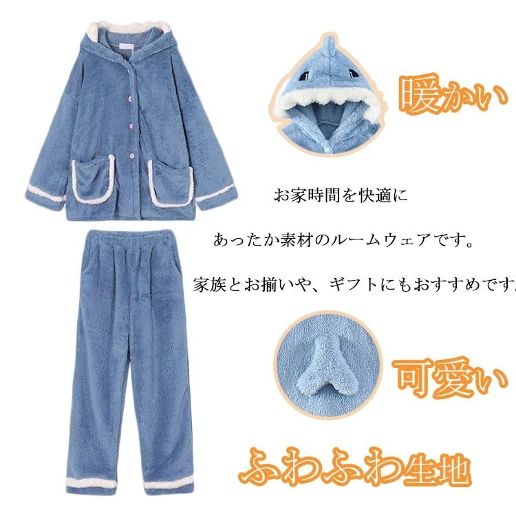 着ぐるみ パジャマ サメ もこもこ パジャマ 可愛い 大人用 モコモコ ルームウェア 修学旅行 着る毛布 動物 レディース 冬用 秋 2点セット 暖かい 前開き 韓国 着ぐるみ風 寝巻き おもしろ お