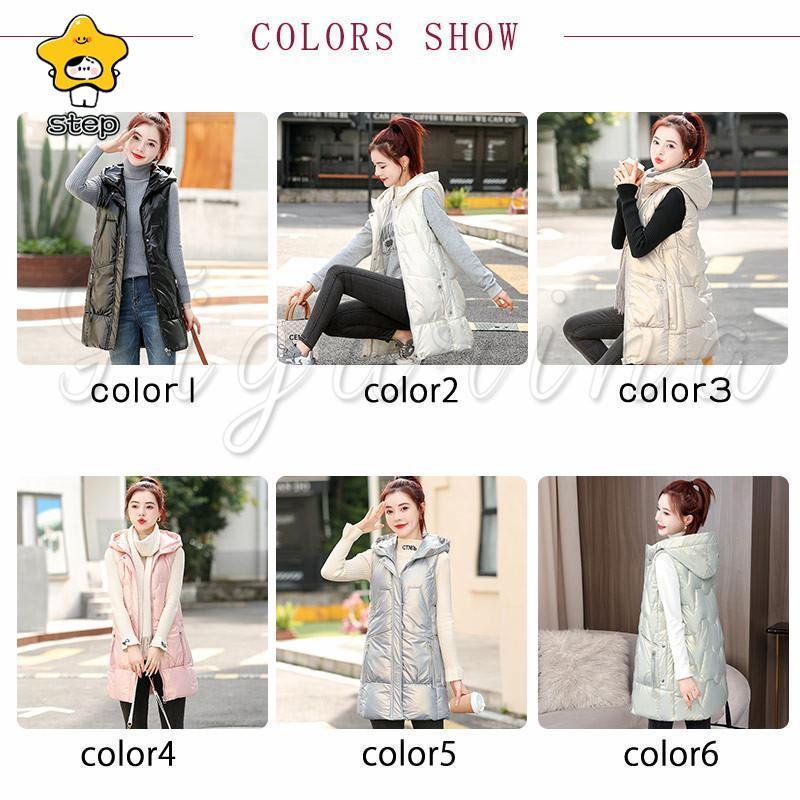 中綿ベスト レディース ダウンベスト 中綿 光沢あり ライトダウン ロング丈 フード付き ベスト ダウン風ベスト レディース ジレ ベスト