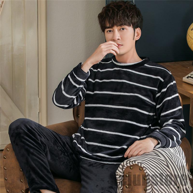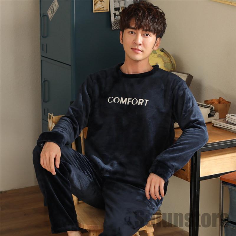 長袖 パジャマ メンズ セットアップ 上下セット 冬 暖かい 裏ボア 裏起毛 ルームウェア ナイトウェア トップス パンツ カジュアル 寝巻き 厚手 秋 あったか