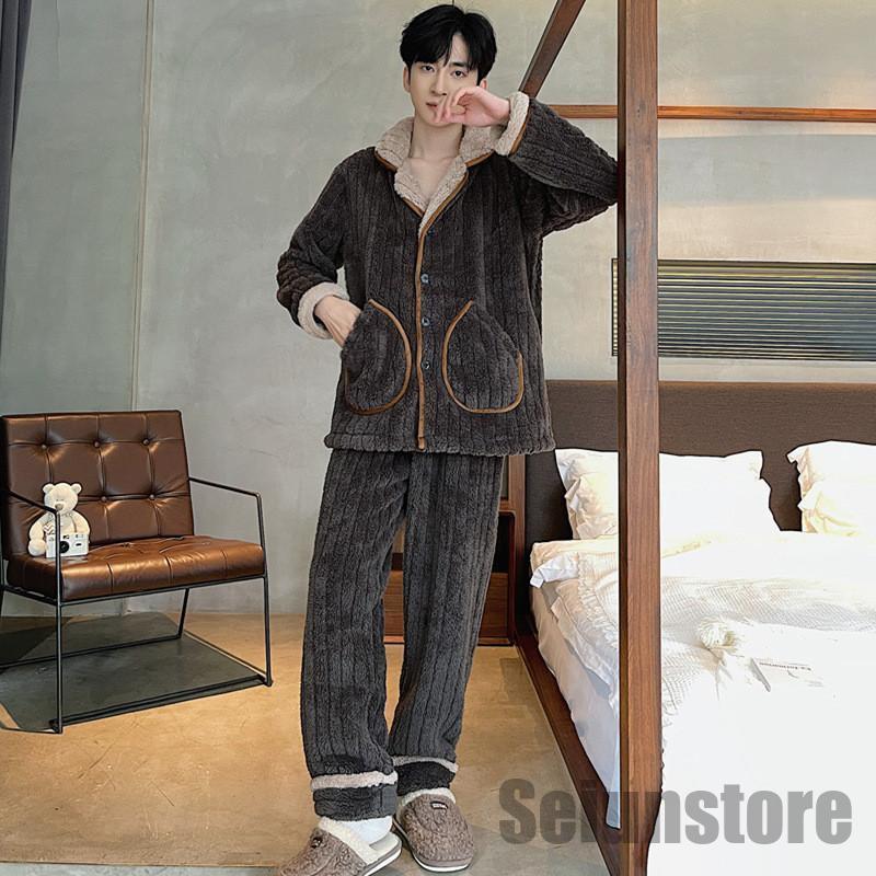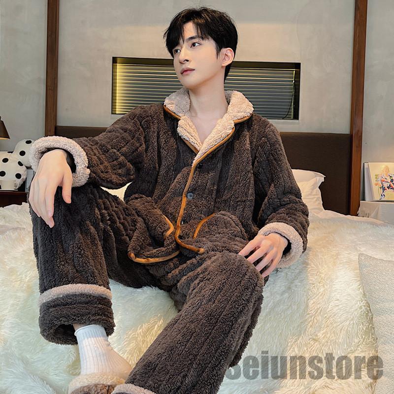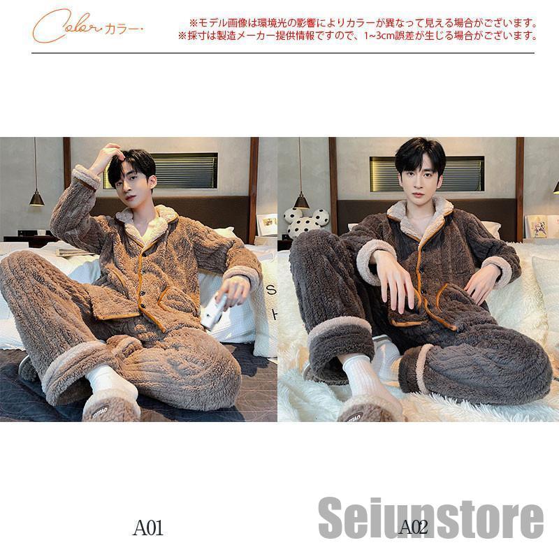 長袖 パジャマ メンズ セットアップ 上下セット 裏ボア 裏起毛 冬 暖かい ルームウェア ナイトウェア トップス パンツ カジュアル 寝巻き 秋 あったか