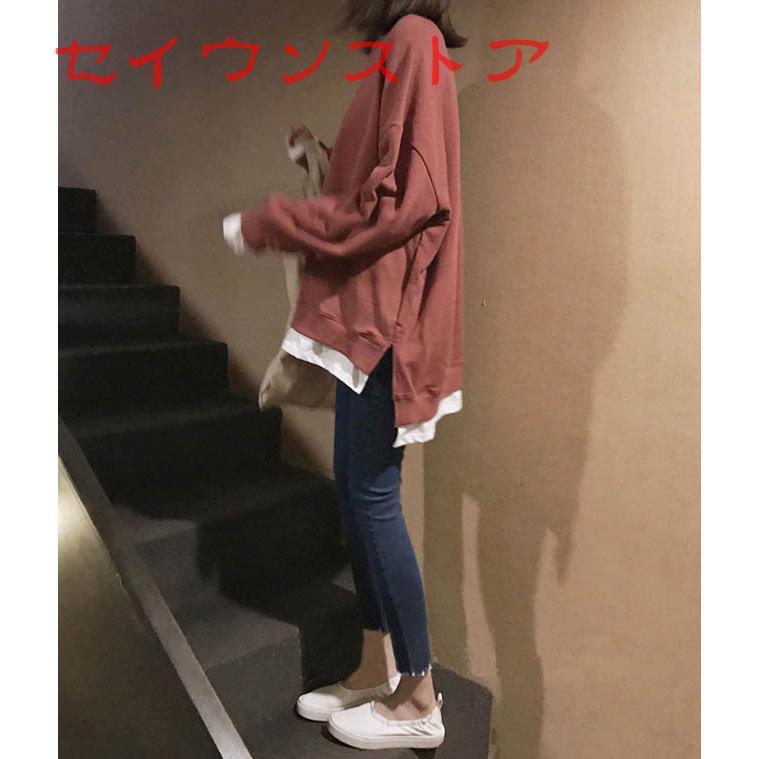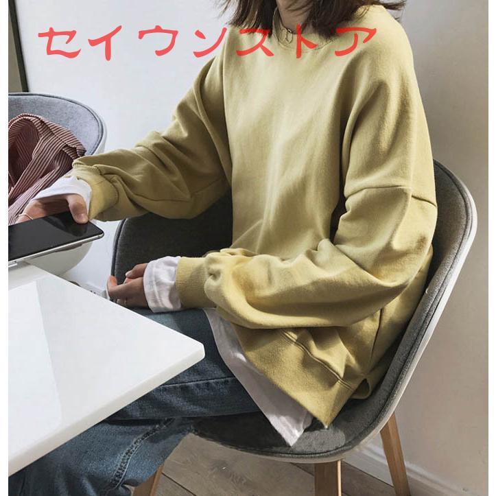 裏起毛 プルオーバー レイヤード風 保温防寒 ドロップショルダー カジュアル服 レディース トップス Tシャツ カットソー