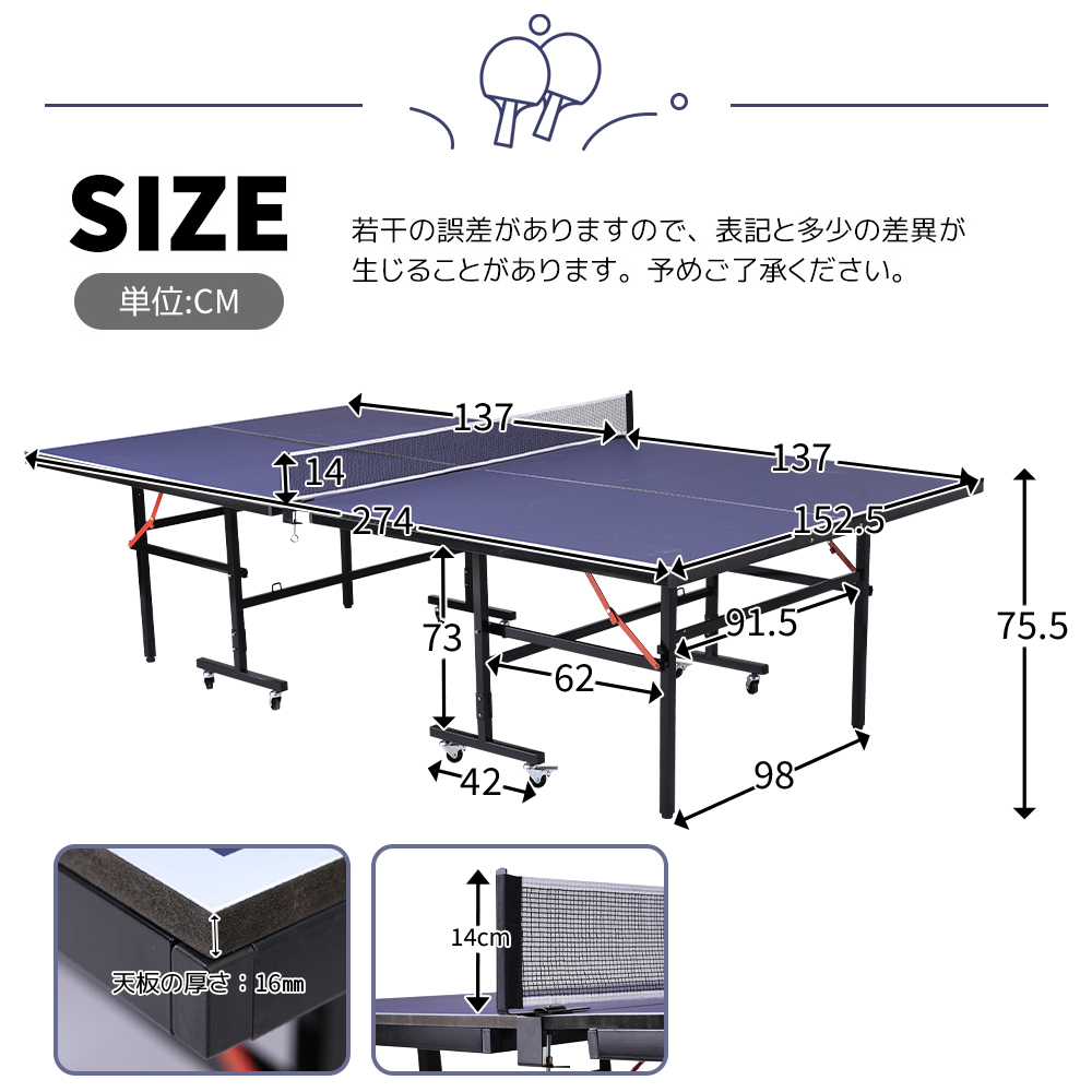 【品質がしっかりしている】テーブルの体は丈夫で、ボールネットの固定はしっかりしていて、金属部品の品質は良いです。プレイ中も何の心配もありません!