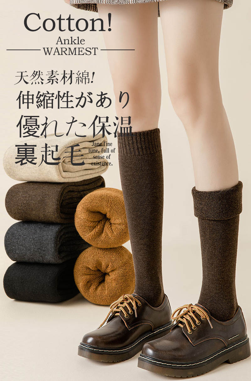 3足セット ソックス 靴下 レディース ハイソックス 秋冬 あったか靴下 冷え取り靴下 ゆったりハイソックス スクールソックス 美脚 裏起毛 防寒 暖かい コットン