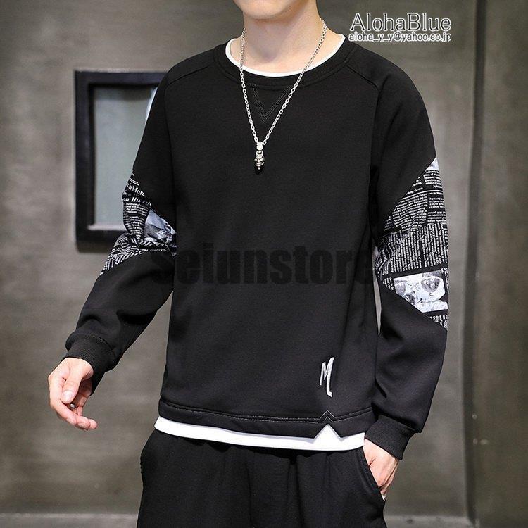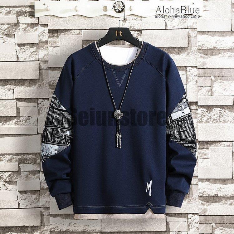裏起毛トレーナー メンズ トップス 秋物トレーナー 裾切り替え クルーネック きれいめ 10代 20代 30代 秋冬 新作 Tシャツ