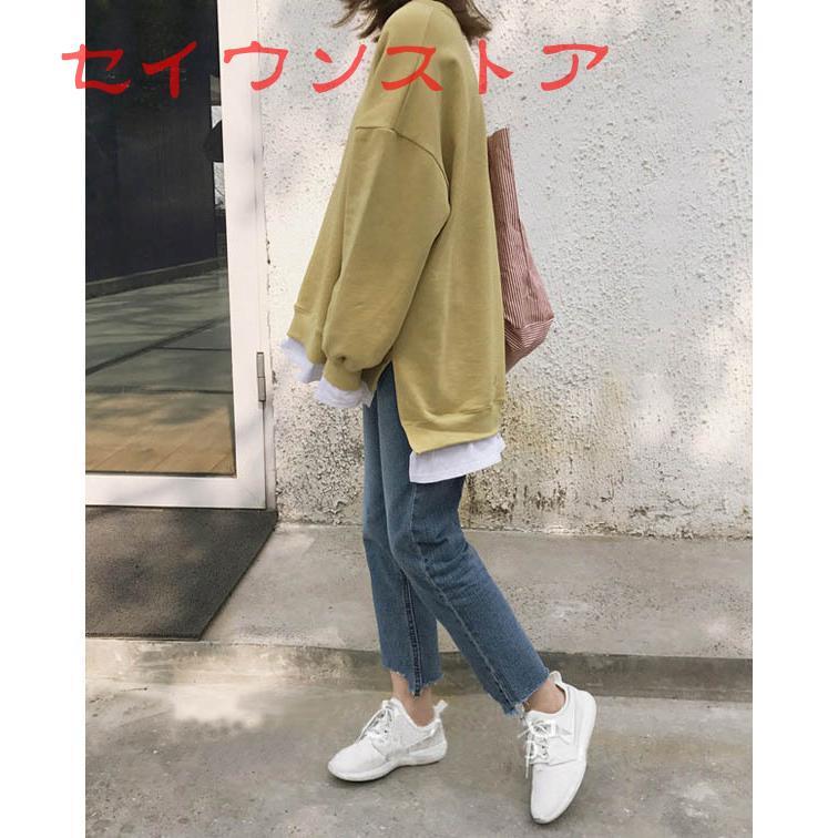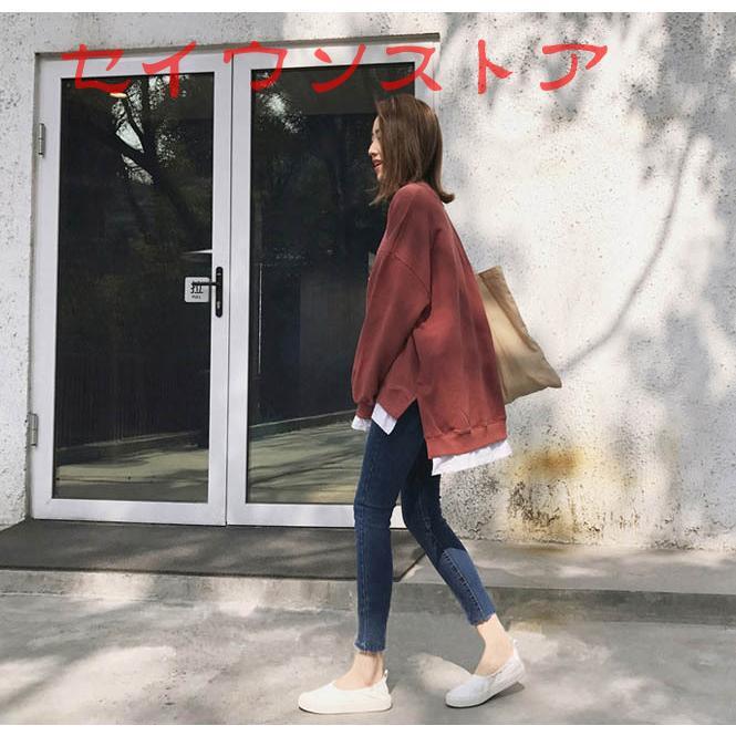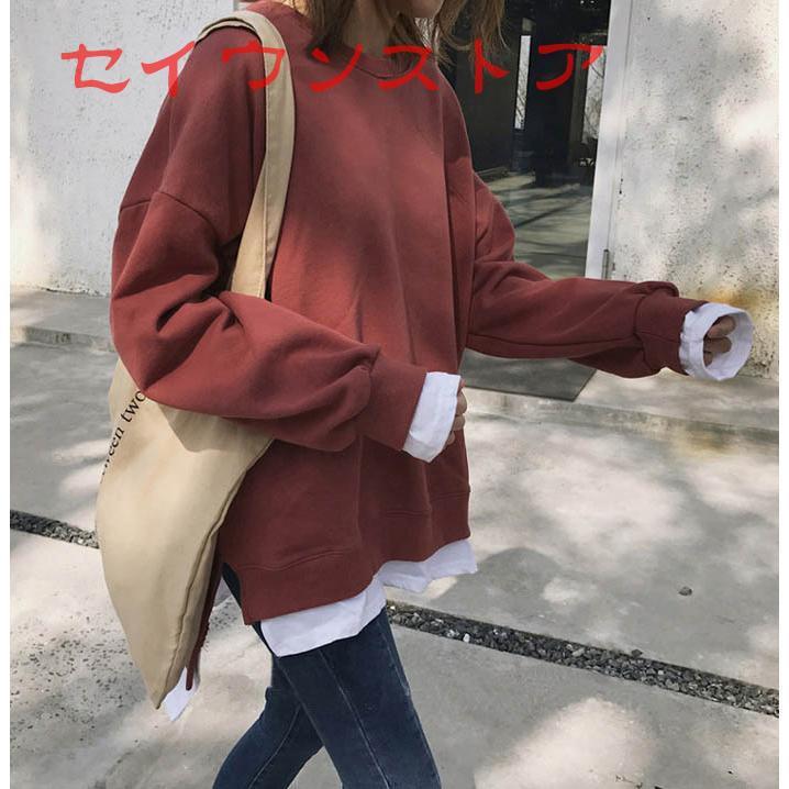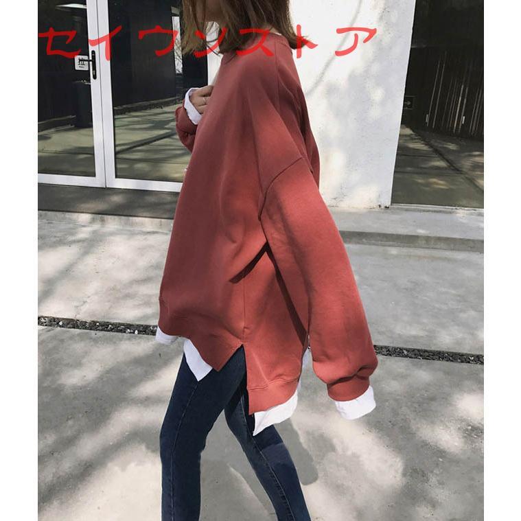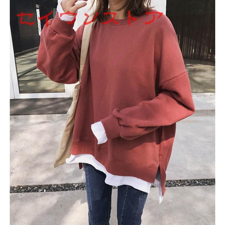 裏起毛 プルオーバー レイヤード風 保温防寒 ドロップショルダー カジュアル服 レディース トップス Tシャツ カットソー
