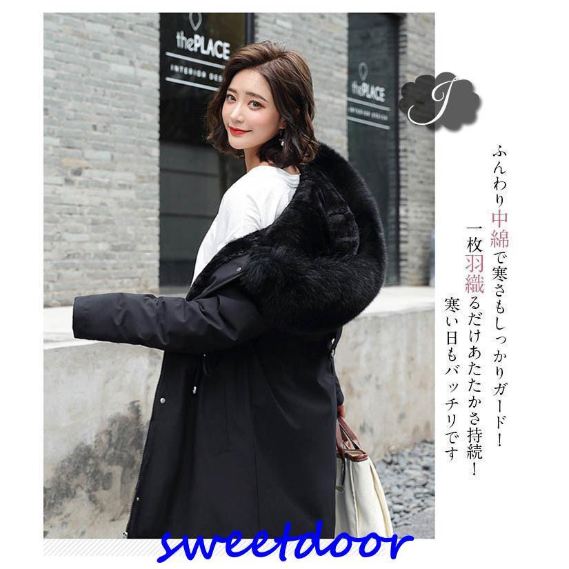中綿コート レディース ファーコート ボアコート モッズコート アウター フェイクファー ロングコート もこもこ フード付き 冬 暖かい 防寒