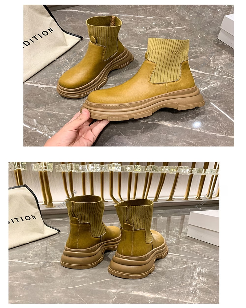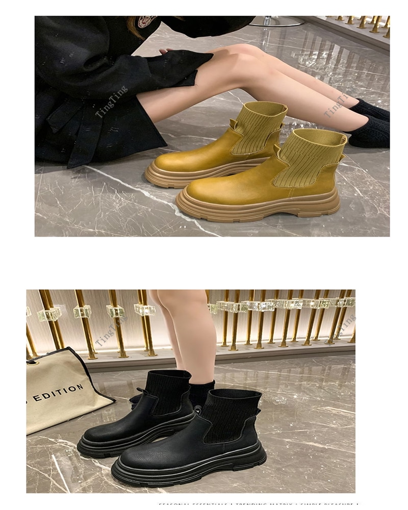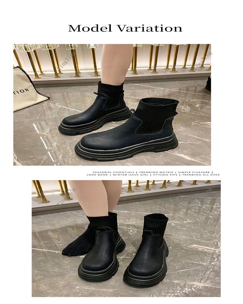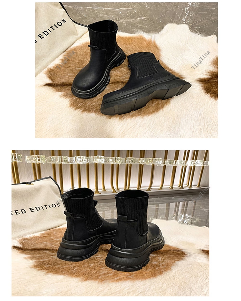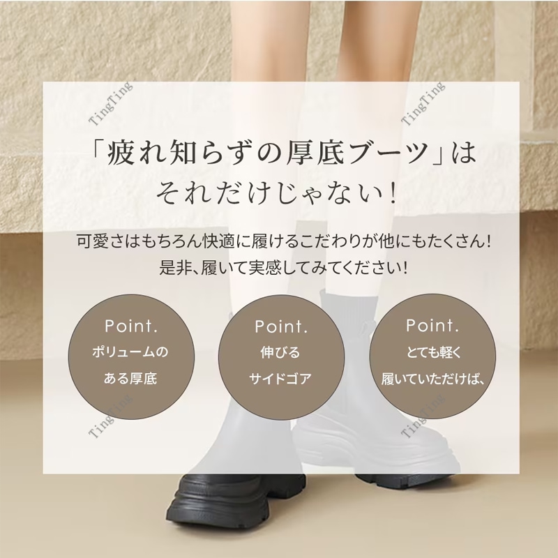 1枚+1枚靴下 ブーツ ミドルブーツ ショートブーツ 厚底ブーツ シューズ 靴 レディース 美脚 バックル ベルト レースアップ 6.5cm台 歩きやすい おしゃれ 韓国風 2color