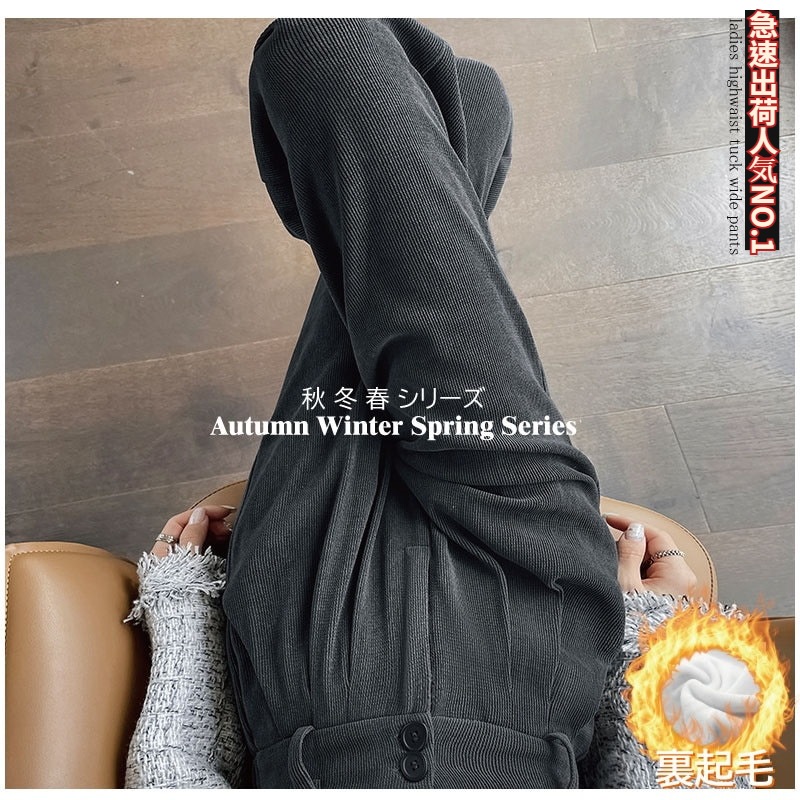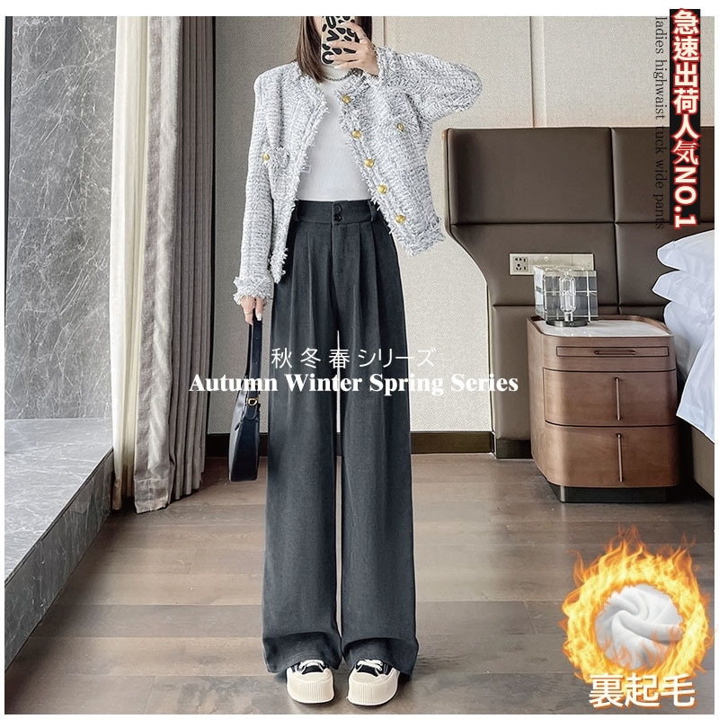 超人気商品 裏起毛レディース ワイドパンツワイドパンツ トレンド 韓国ファッション リブ ワイドレッグパンツ レディース 無地 シンプル さらさら リラックス カジュアル おしゃれ