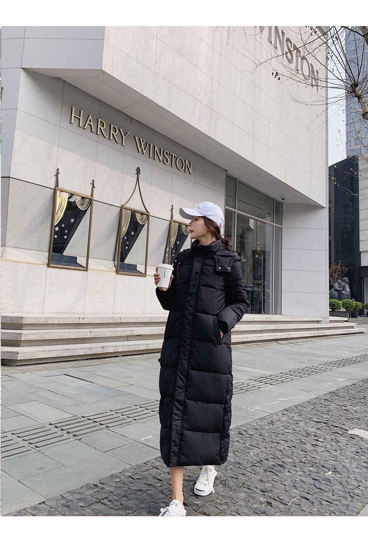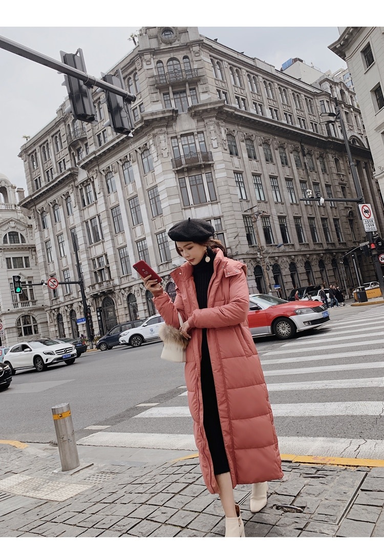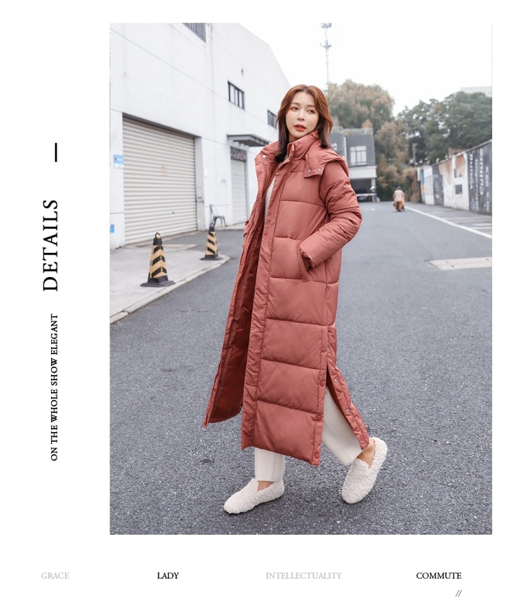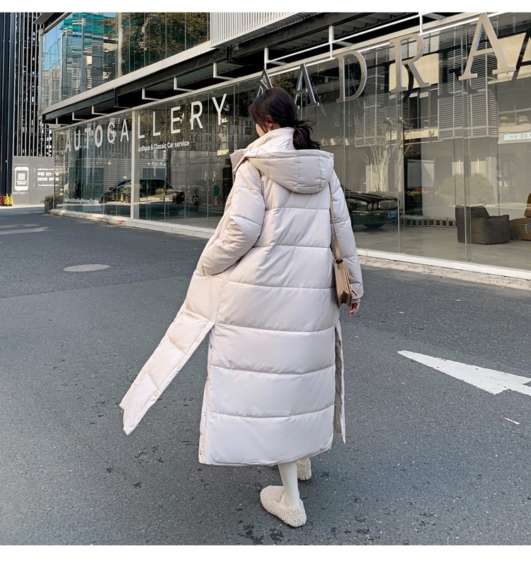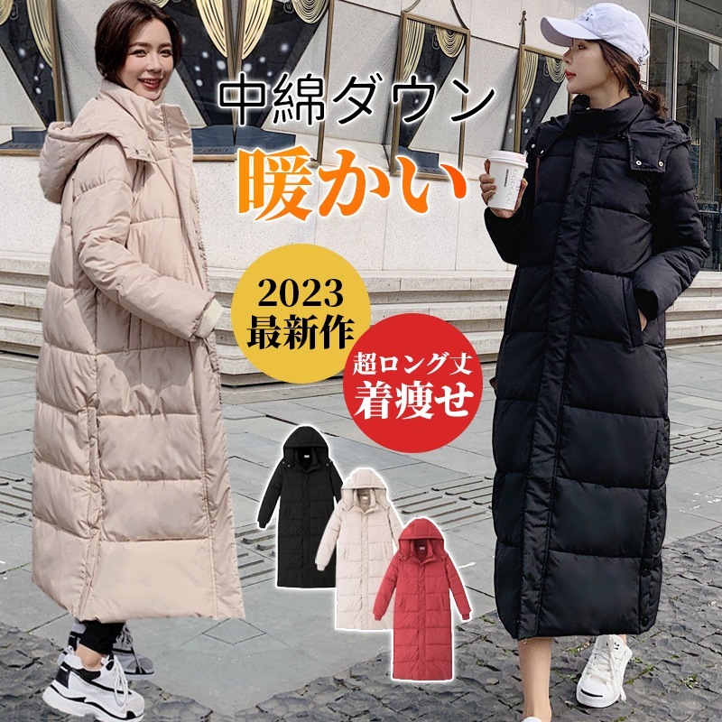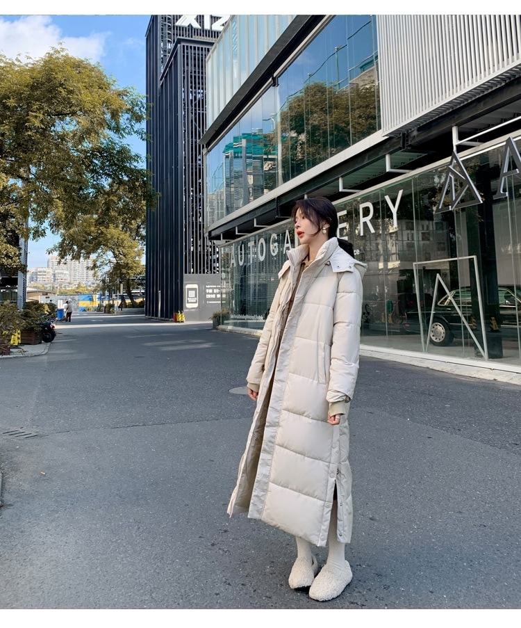 ダウンコート ベンチコート レディース アウター 膝下 フード付き ダウン 超ロングコート 中綿コート 韓国ファッション サイドスリット 着痩せ 軽量