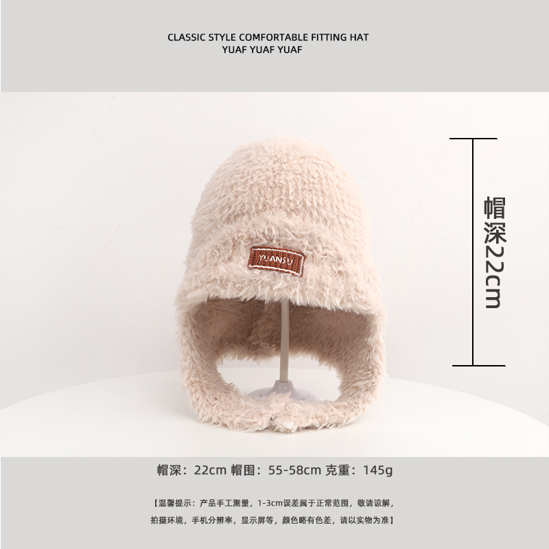 秋冬新作帽子 韓国ファッション モコモコ帽子冬の厚手保温漁師帽冷帽大頭囲ニット毛糸帽子小顔効果 韓国版 ニット帽