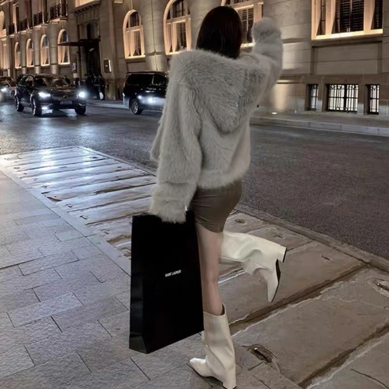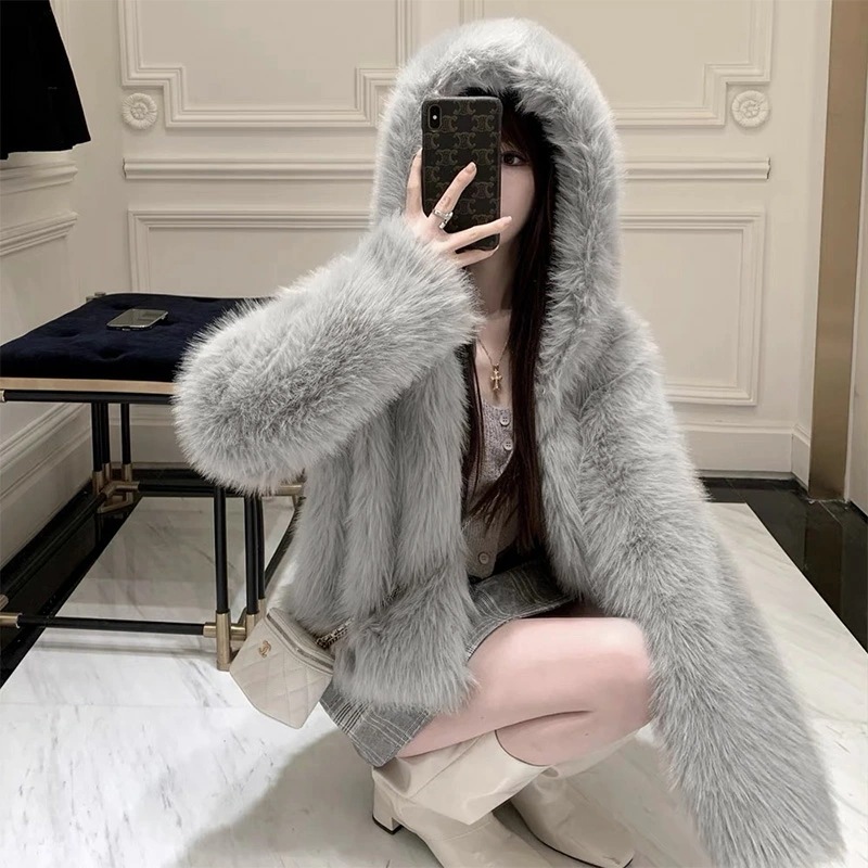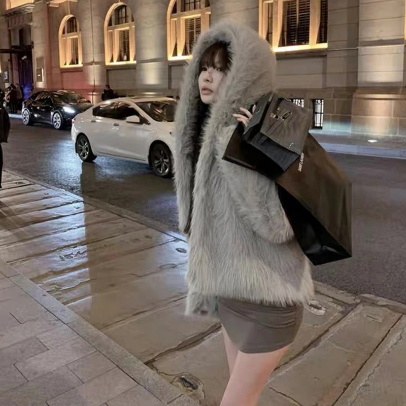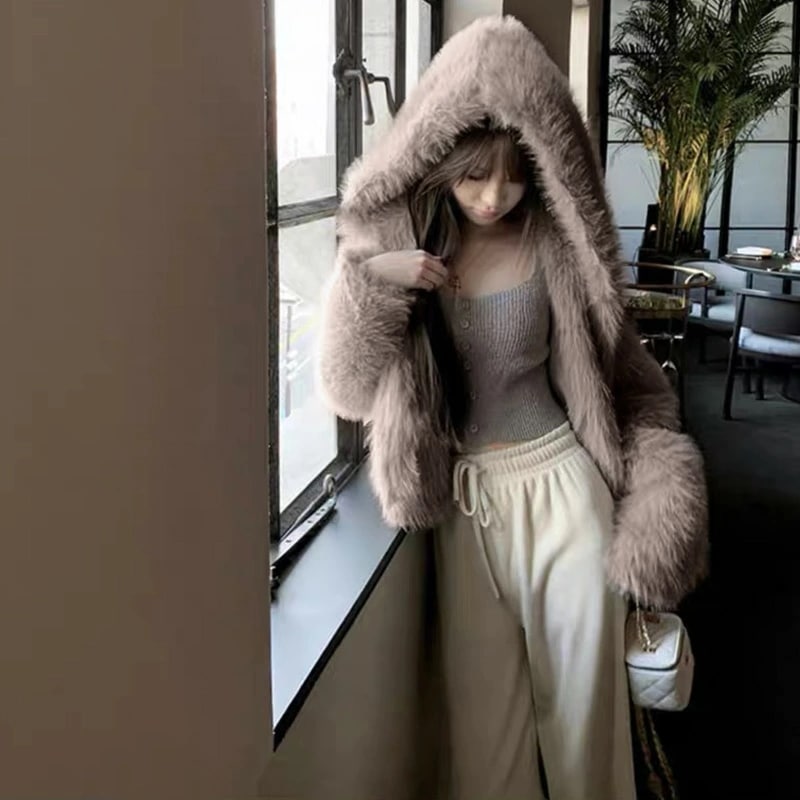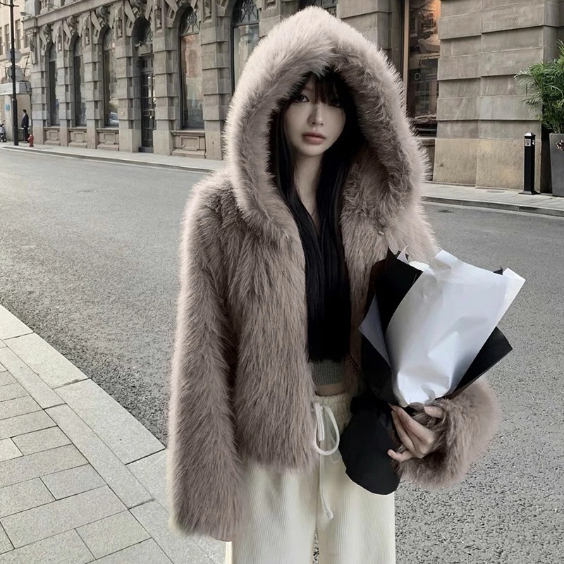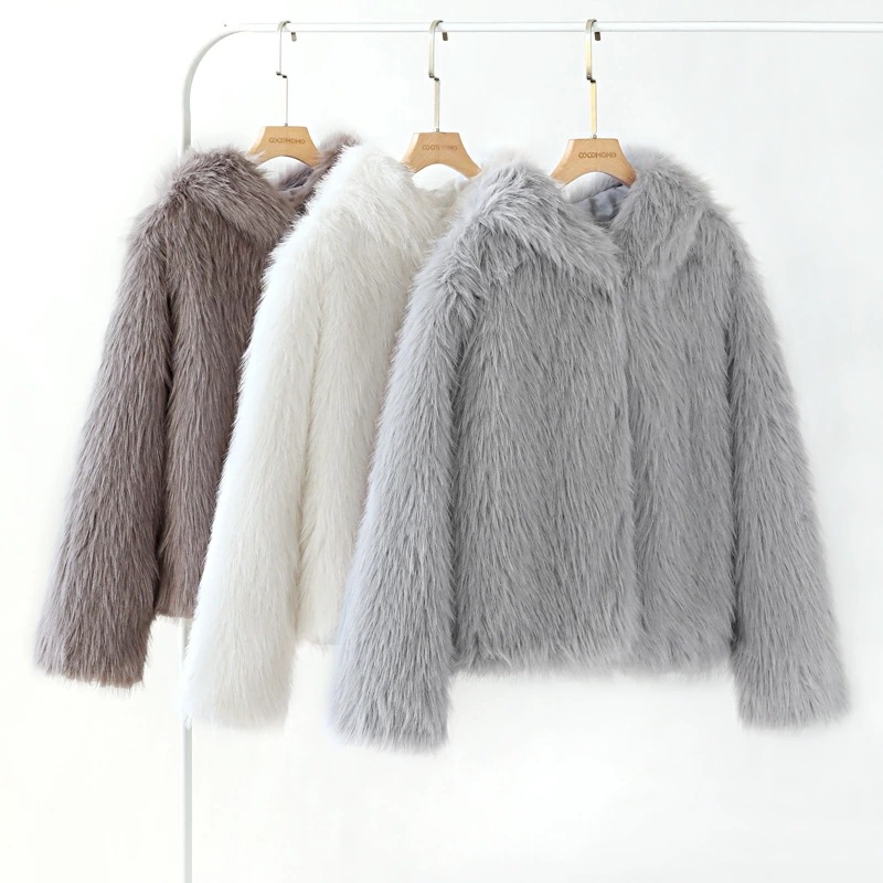 ふわふわシャギー ファーブルゾン ファーコート ショート ブルゾン フード付き レディース ファー コート フェイクファー ショート丈 アウター 暖かい もこもこ