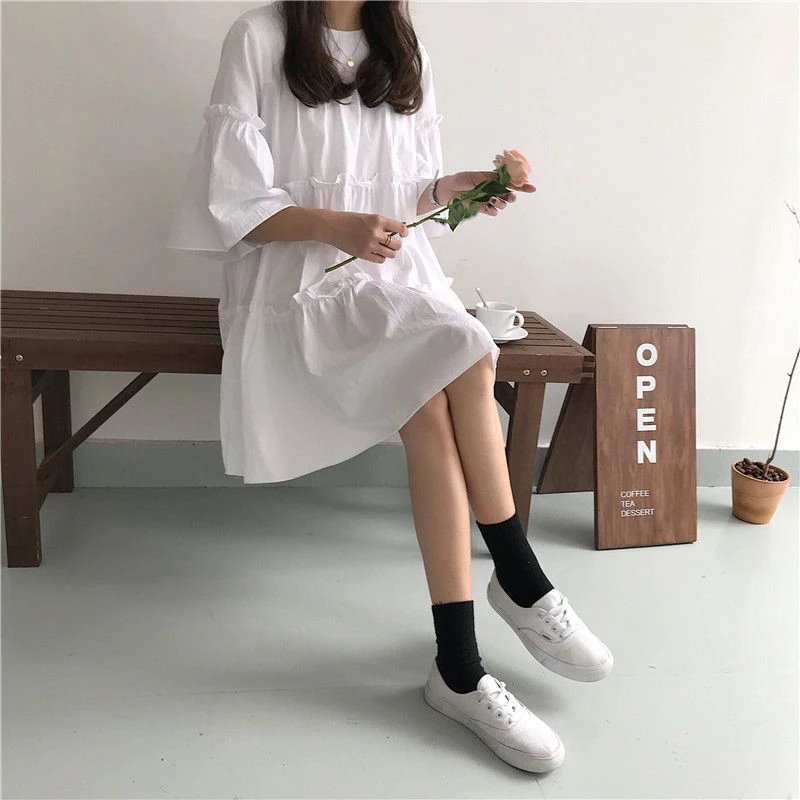 2024新作 日韓ファッション tシャツ レディース 可愛い ドールシャツ ゆったり大きいサイズ 体型カバー 半袖 トップス tシャツワンピース 百掛け 着痩せ 怠惰な風 tシャツ