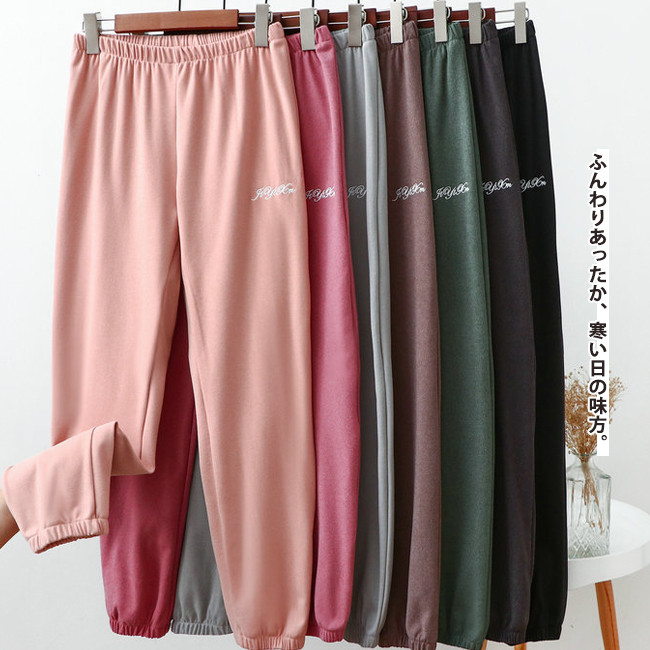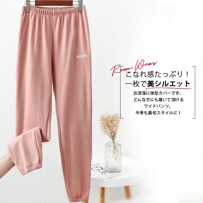 ルームパンツ 母の日 部屋着 ナイトウェア 吸湿発熱 微起毛 ストレッチ 裾ゴム 暖かい レディース 秋冬 ルームウェア 刺繍ロゴ ゆったり 裏起毛 長ズボン パジャマ レディーロングパンツ