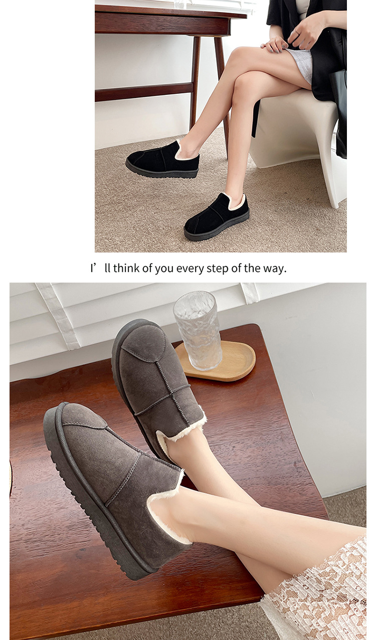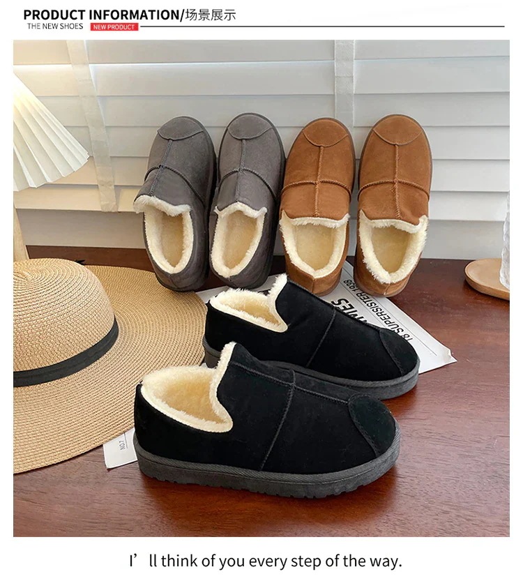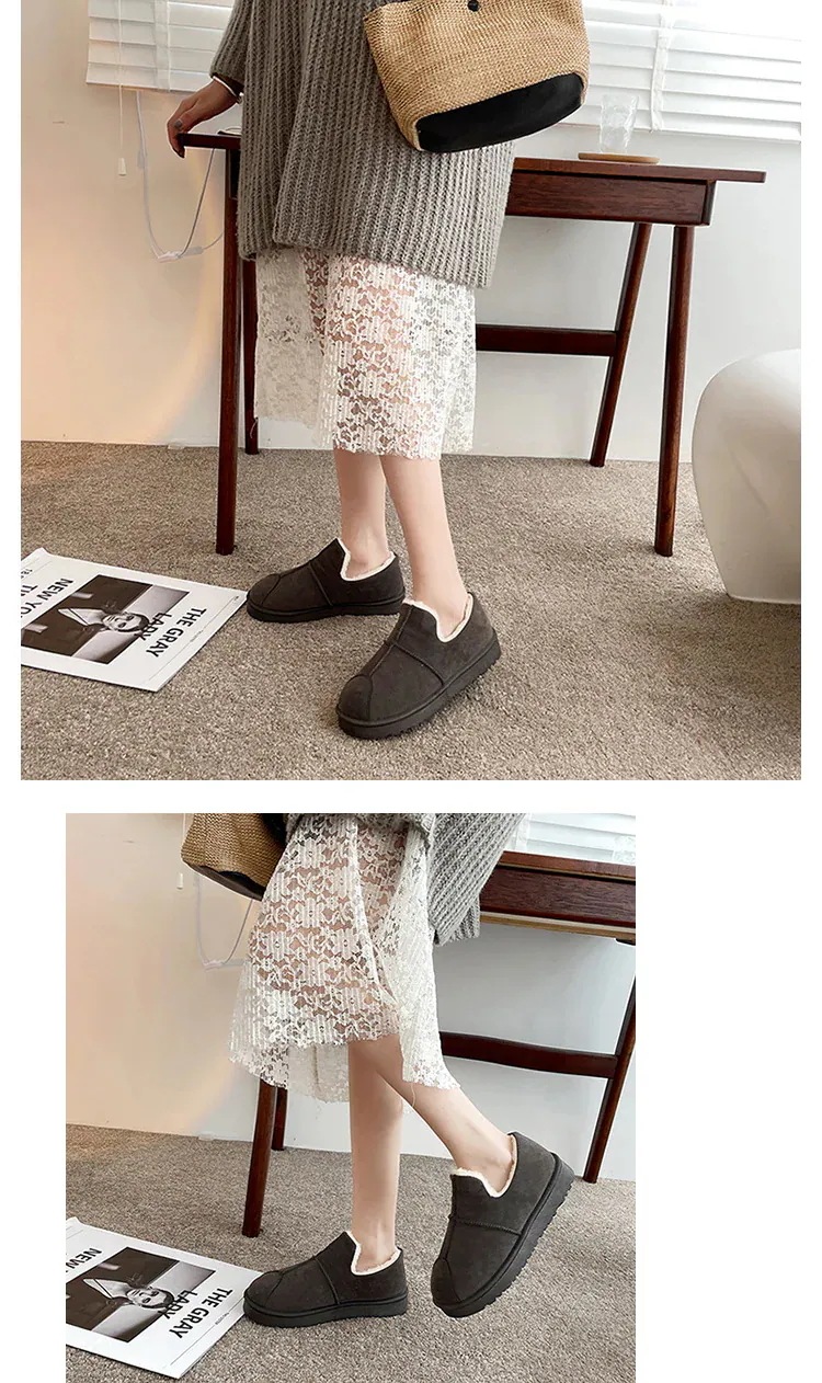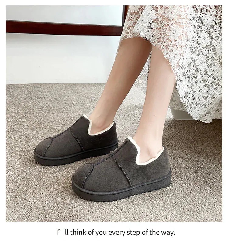 もこもこ スリッポン 厚底靴 秋冬 ボア 防風 暖かい快適 スノーブーツ ラウンドトゥ シンプル ブレッドシューズ スエード