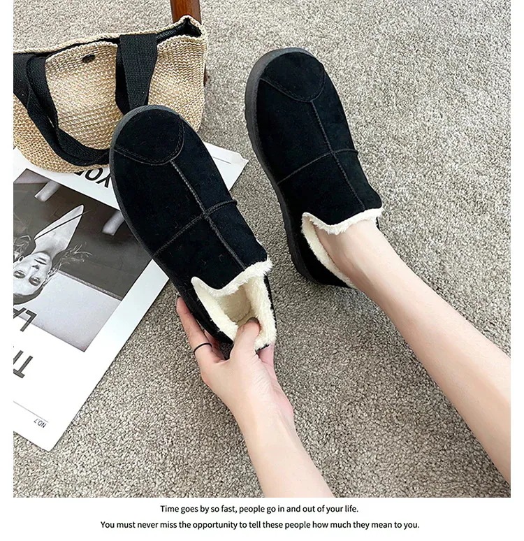 もこもこ スリッポン 厚底靴 秋冬 ボア 防風 暖かい快適 スノーブーツ ラウンドトゥ シンプル ブレッドシューズ スエード
