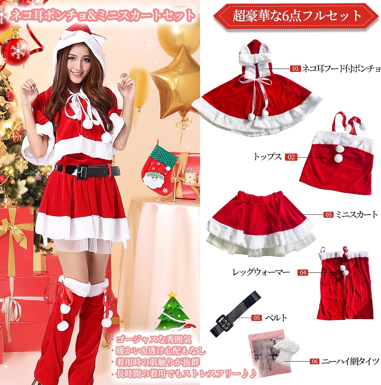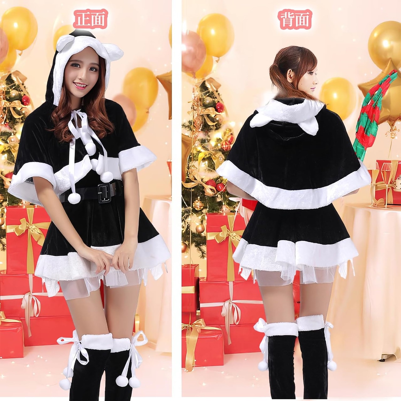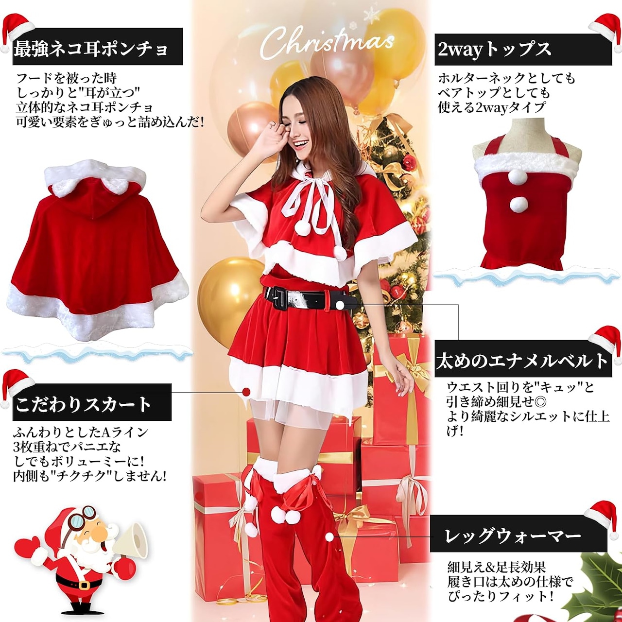 2024 サンタコスプレ レディース 黒サンタ ネコ耳 ポンチョ クリスマス サンタ コスプレ 黒 セクシー ブラックサンタ クリスマスコスプレ サンタコス サンタ衣装 コスチ