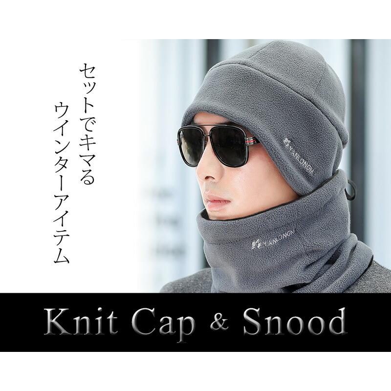 ニット帽 メンズ 冬 キャップ スヌード 2点セット 黒 シンプル 無地 帽子 ビーニー ネックウォーマー マフラー 帽子