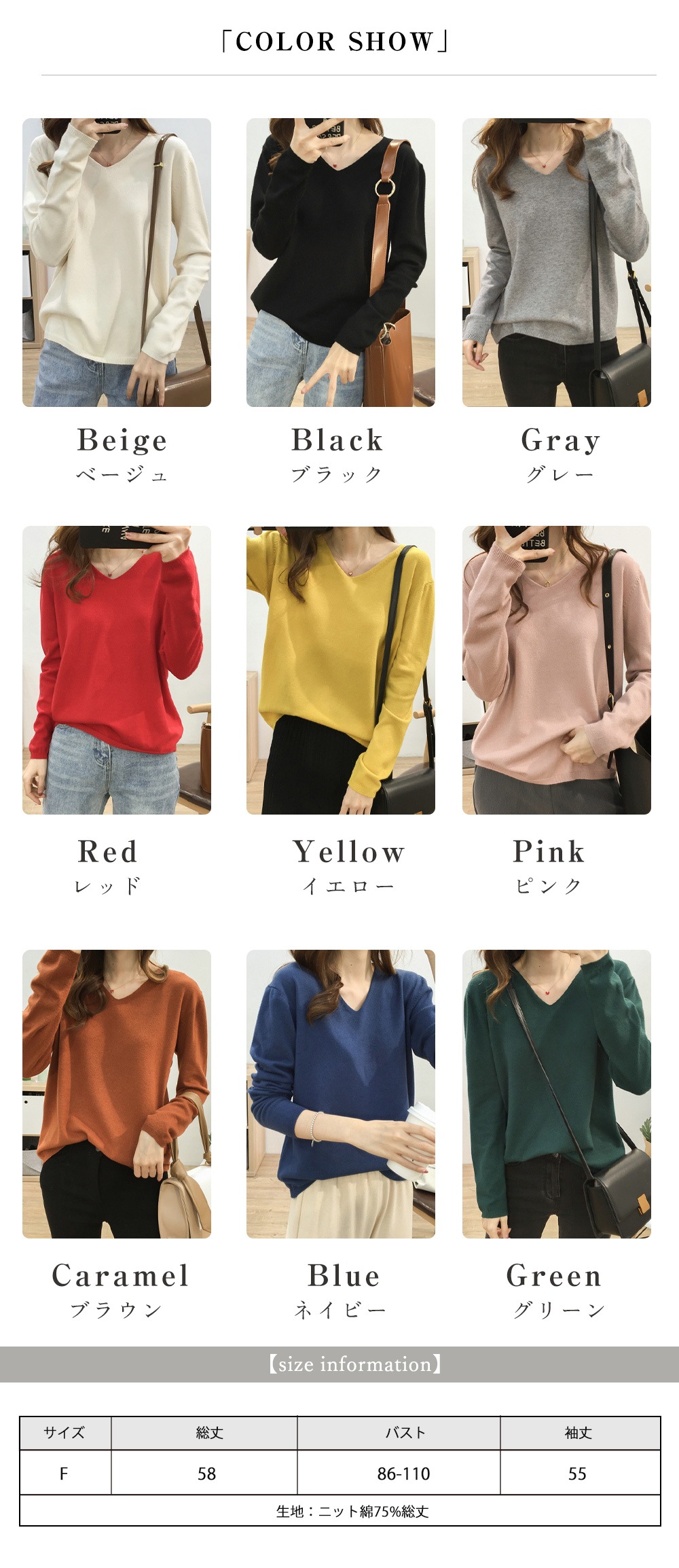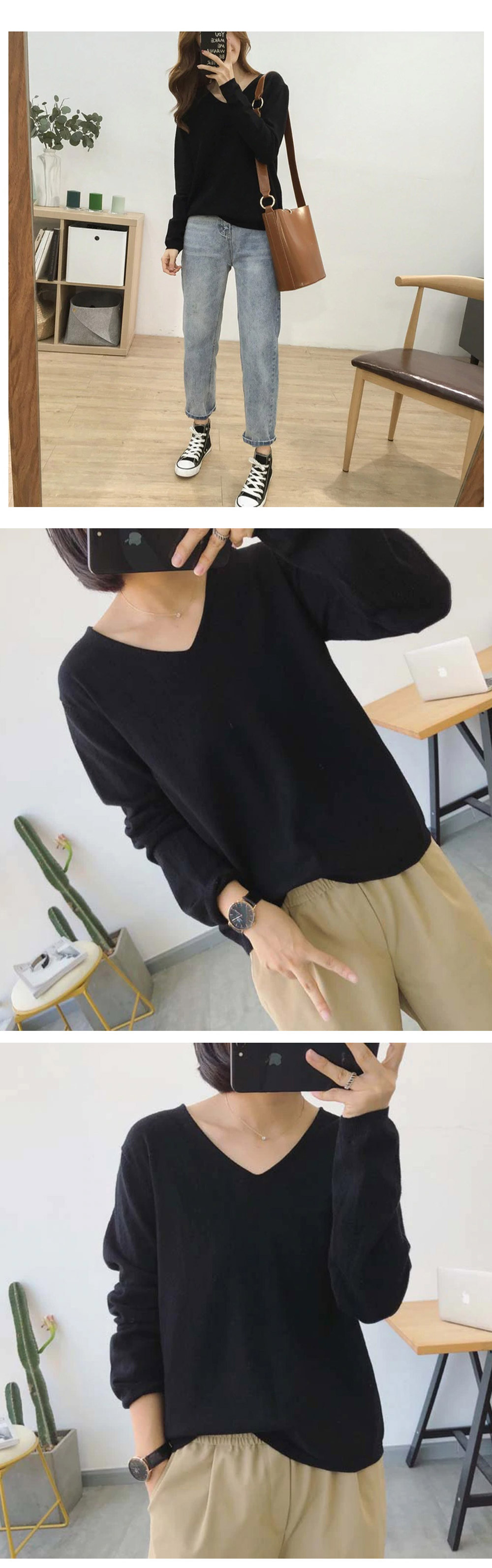 Vネック無地 長袖 ドロップショルダー ニットクルーネック Vネック ニット トップス 長袖 韓国ファッション 秋 冬 薄手 ゆるニット 肌触しっとり きれいめ セータ