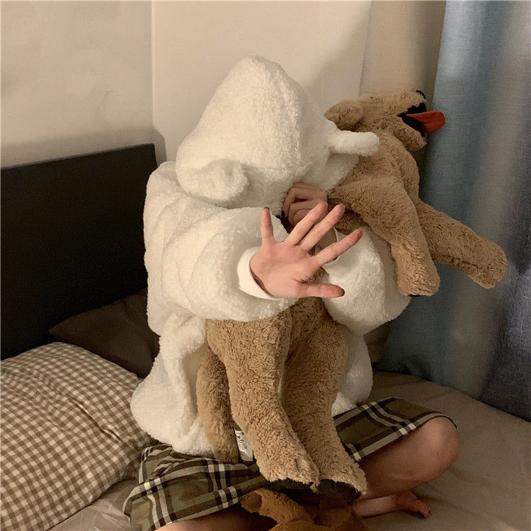 冬のとろみが可愛いくま耳イミテーションラムウール年代縮みジッパー長袖フード付きセータージャケット女子学生 パーカー
