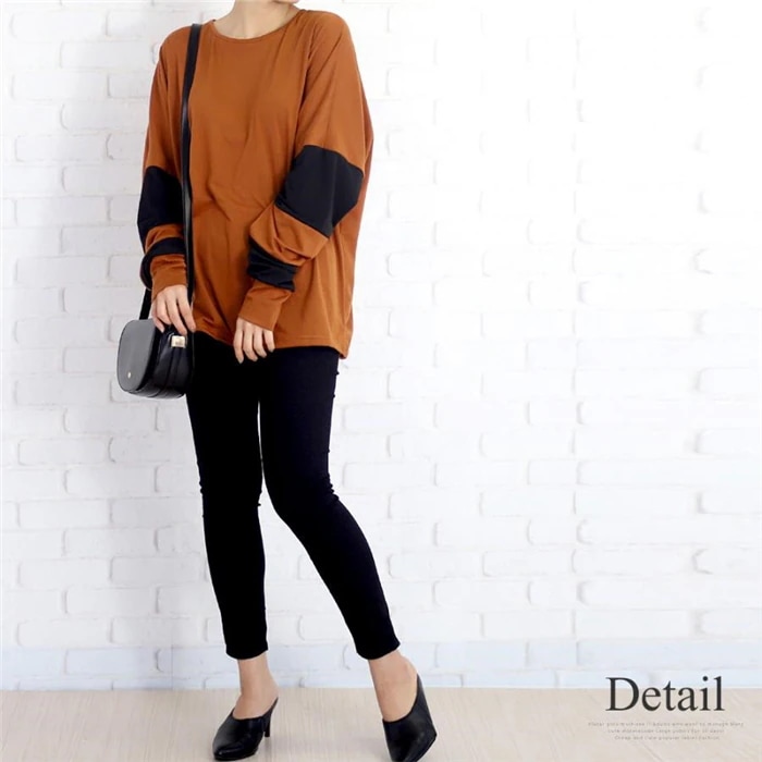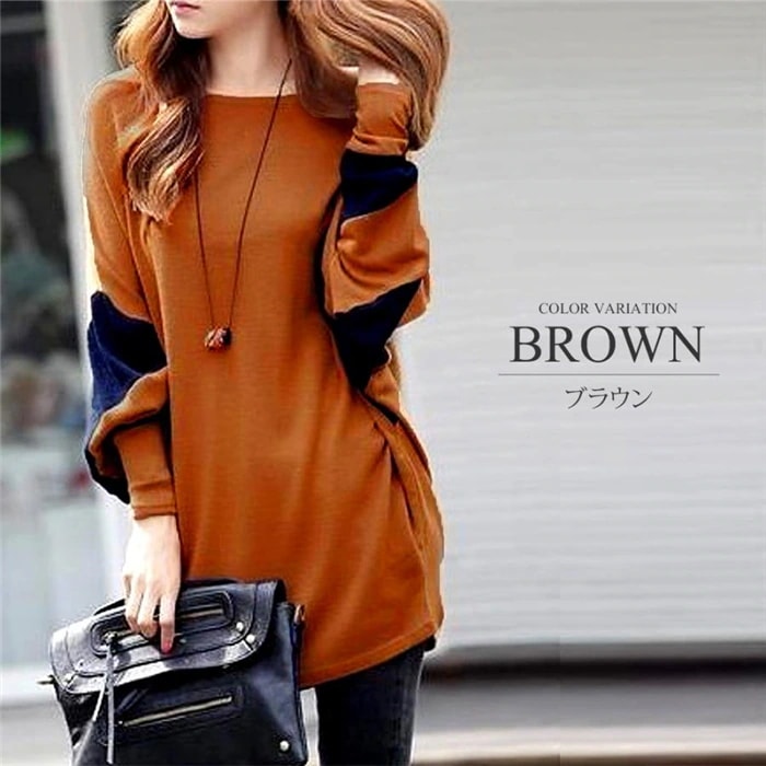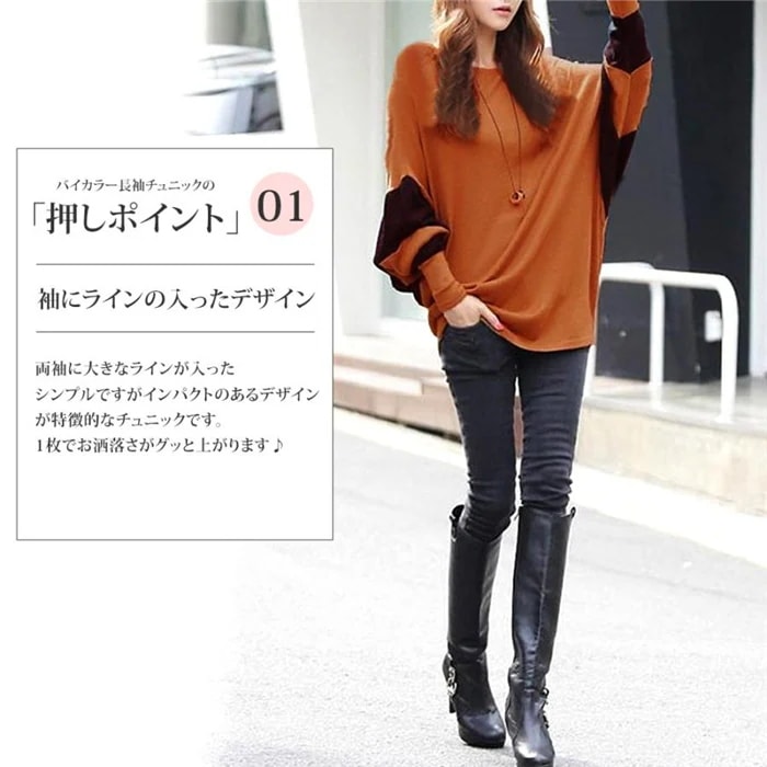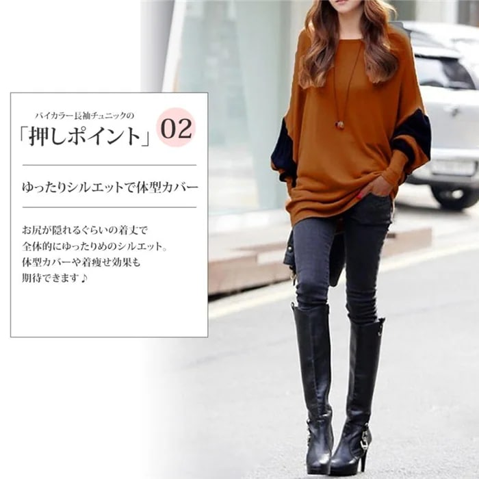 トップス シルエット チュニック 長袖 着痩せ 秋冬 ゆったり 大人系 バイカラー レディース チュニック