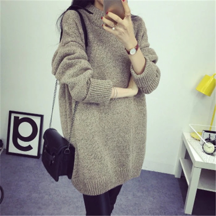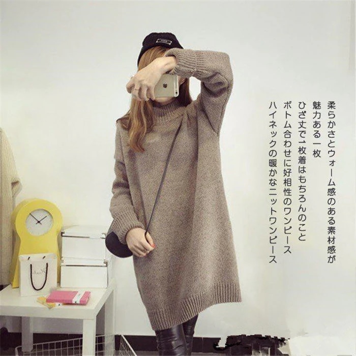 ひざ丈 レディース マキシ丈 タートルネック 秋冬 トップス チュニック ニットワンピース ニット ハイネック チュニック