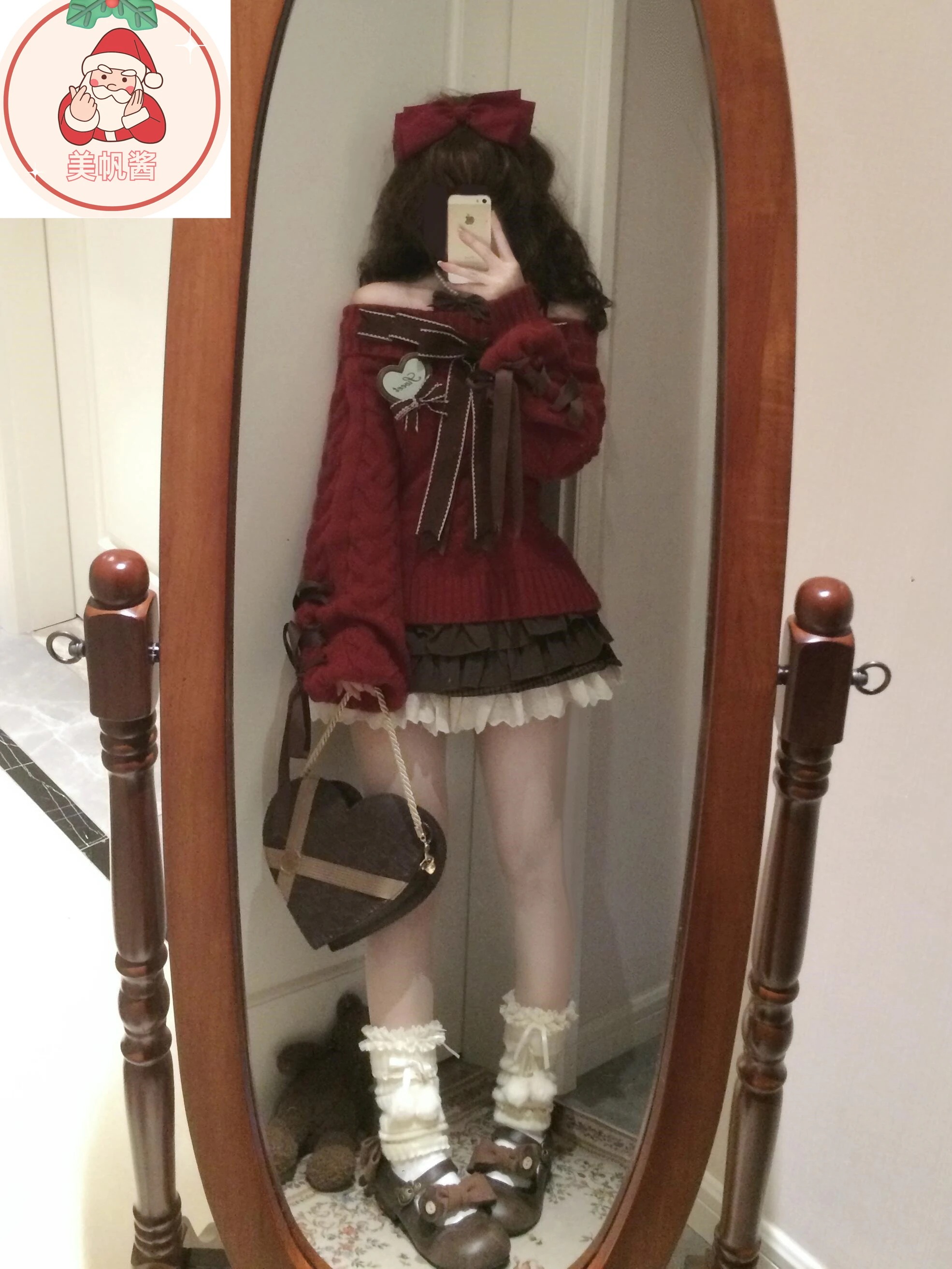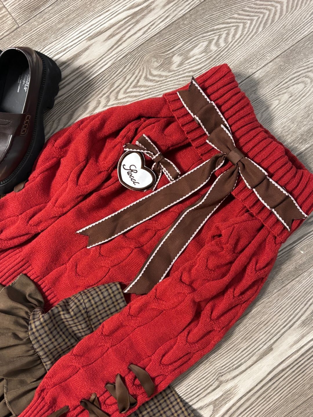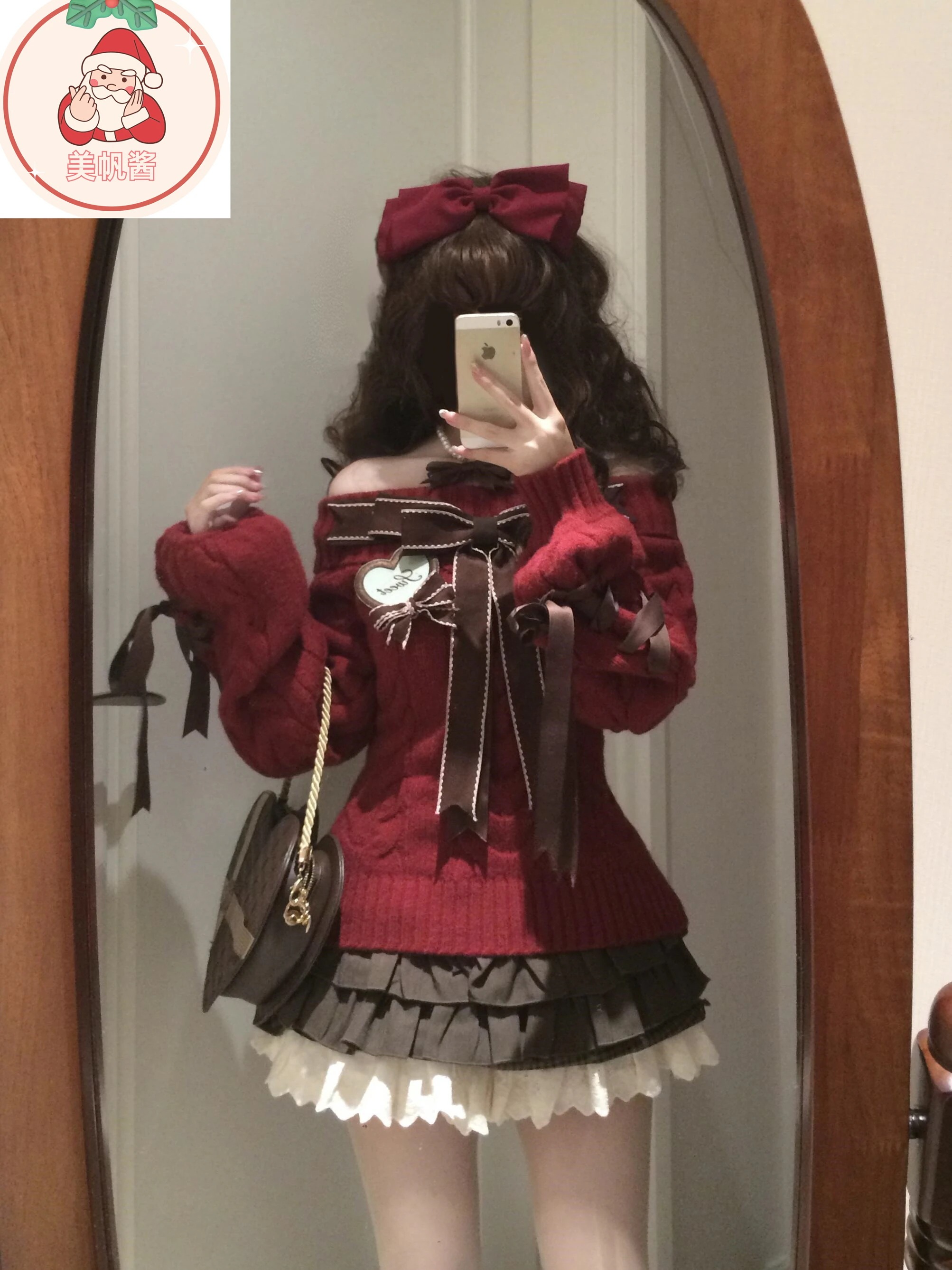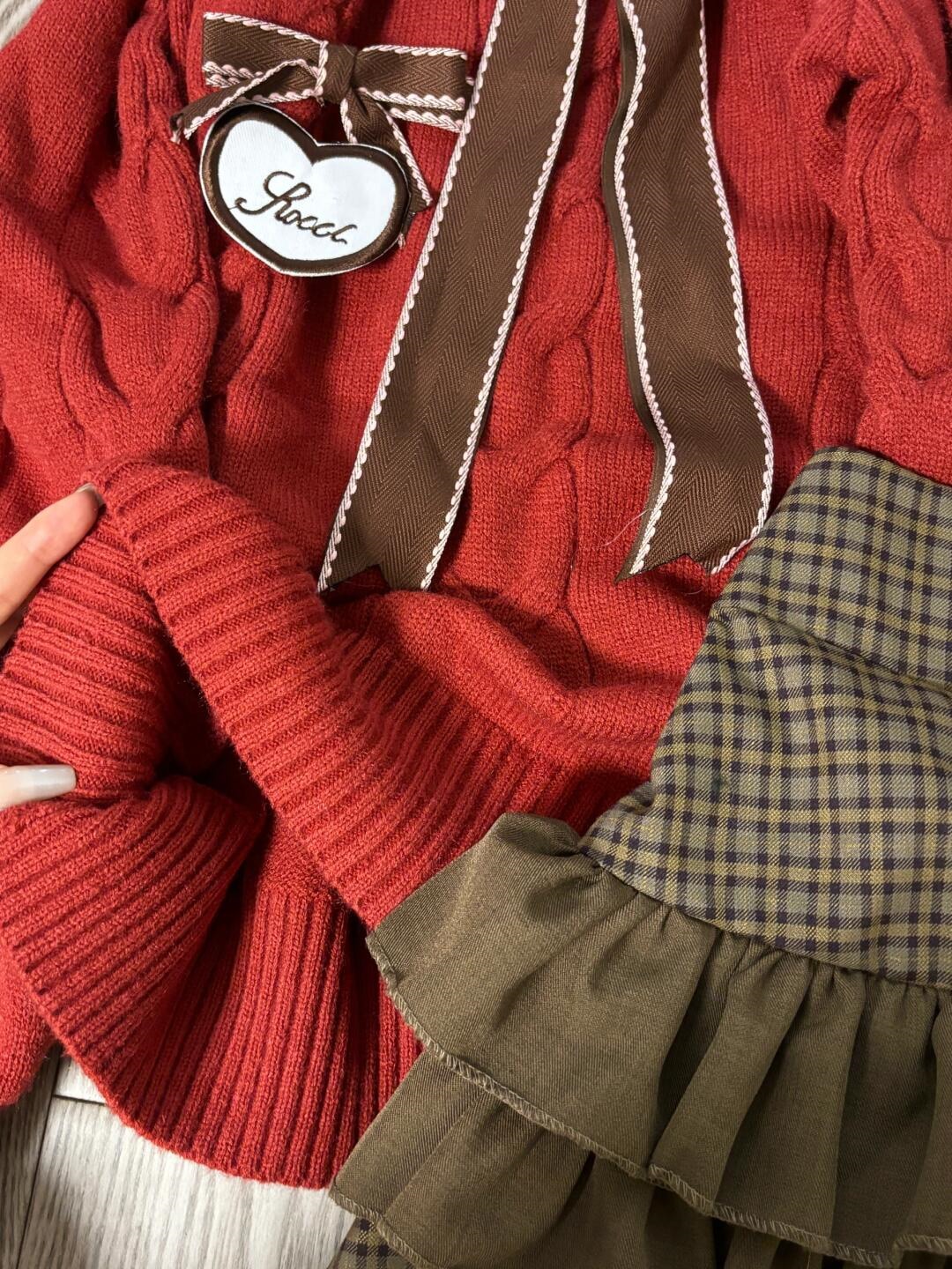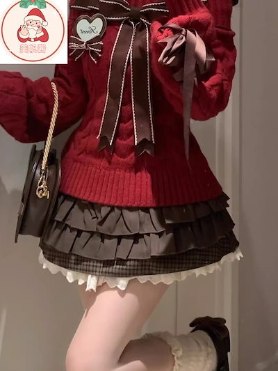 サンタコス クリスマス レッド ワンラインカラー 蝶ネクタイ ニットセーター ケーキスカート スーツ コスチューム