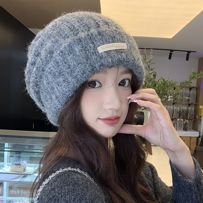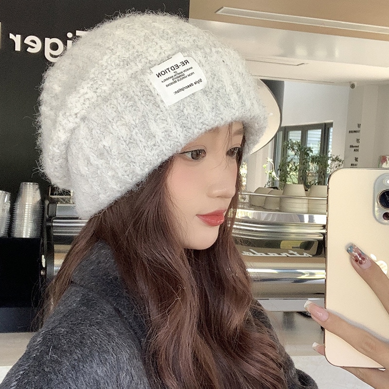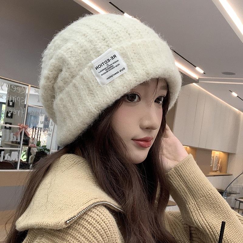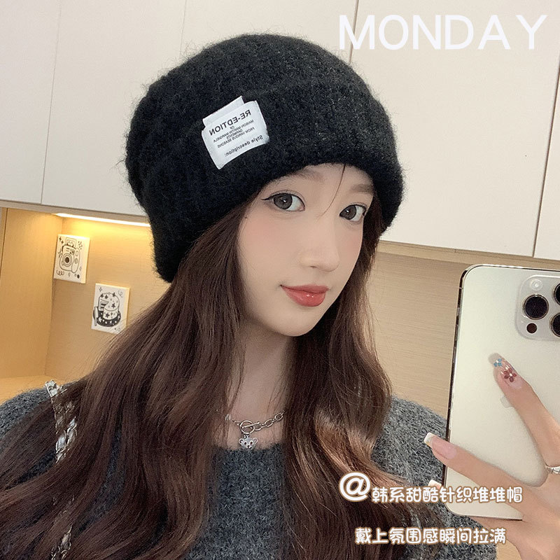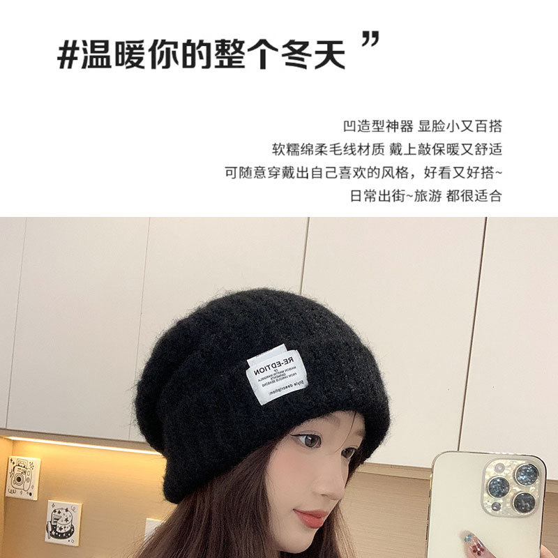 日系 冬 ニット帽 一体型 ストール 暖かいプルオーバーハットビブ 小顔効果 ハット 保温 韓国ファッション ハット レディース