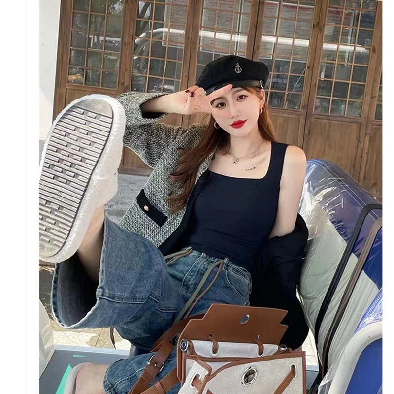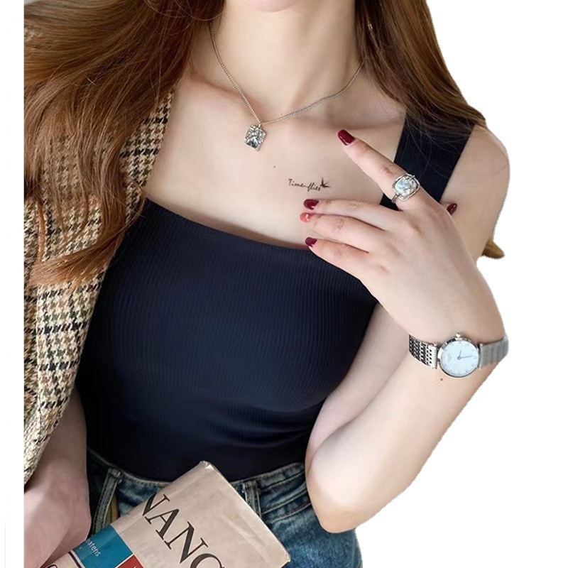 キャミソール 2024 新作 カップ付きインナー スクエアネック 着痩せ 無地 タンクトップ キャミソール