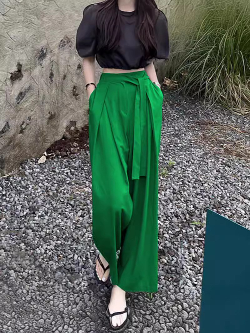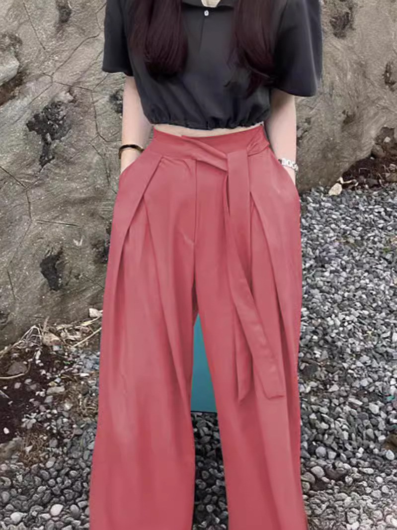 2024新作 シンプル 百掛け ワイドパンツ カジュアルパンツ ハイウエスト 垂れ感 気質 モップパンツ スラックスパンツテーパードパンツひんやりボトムス おしゃれヨガウェア