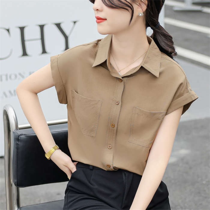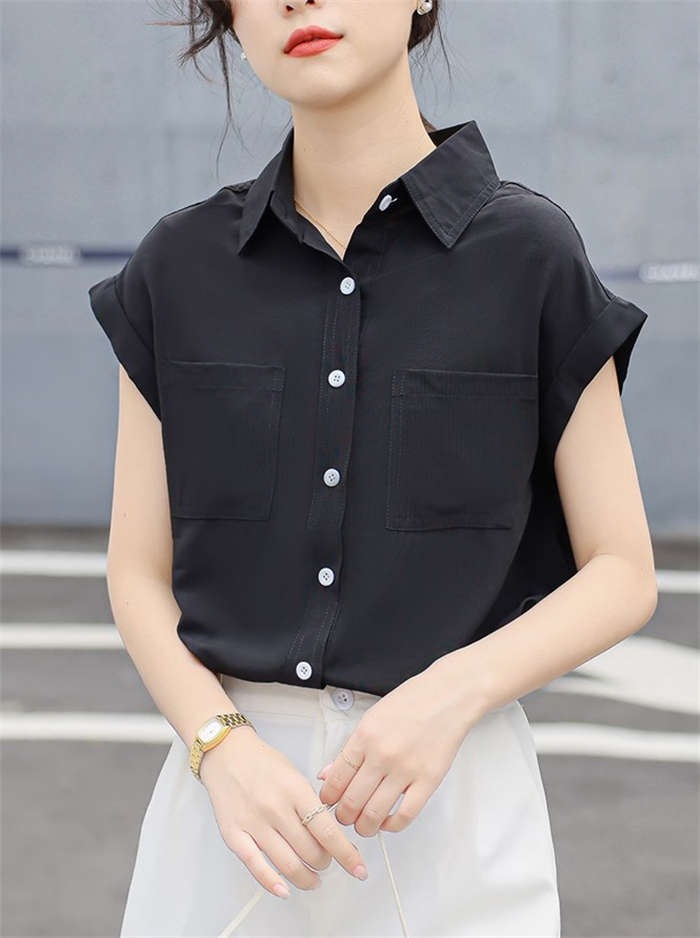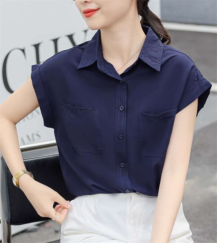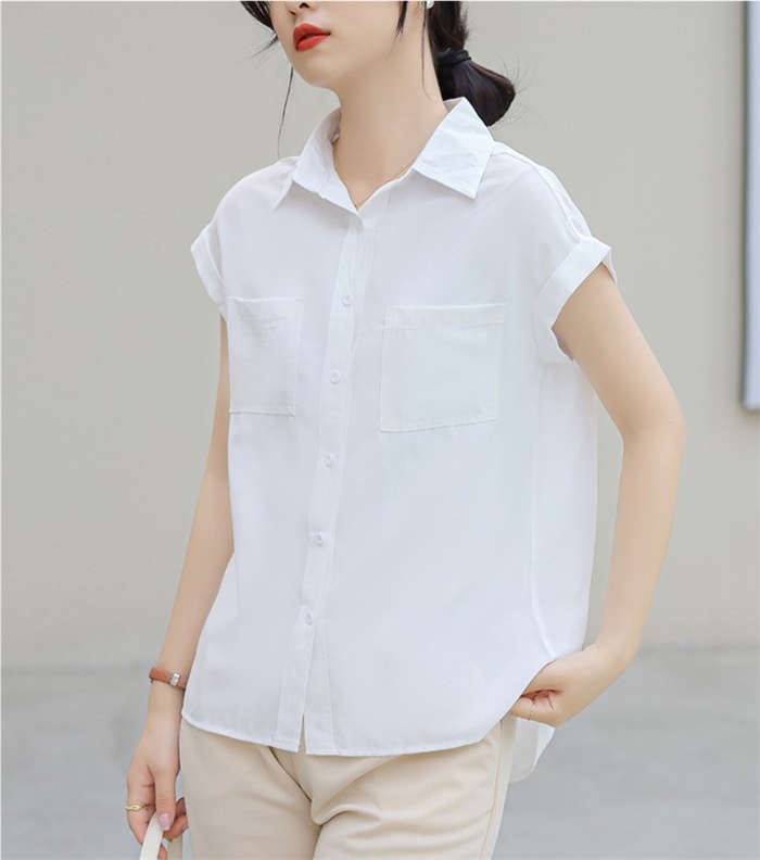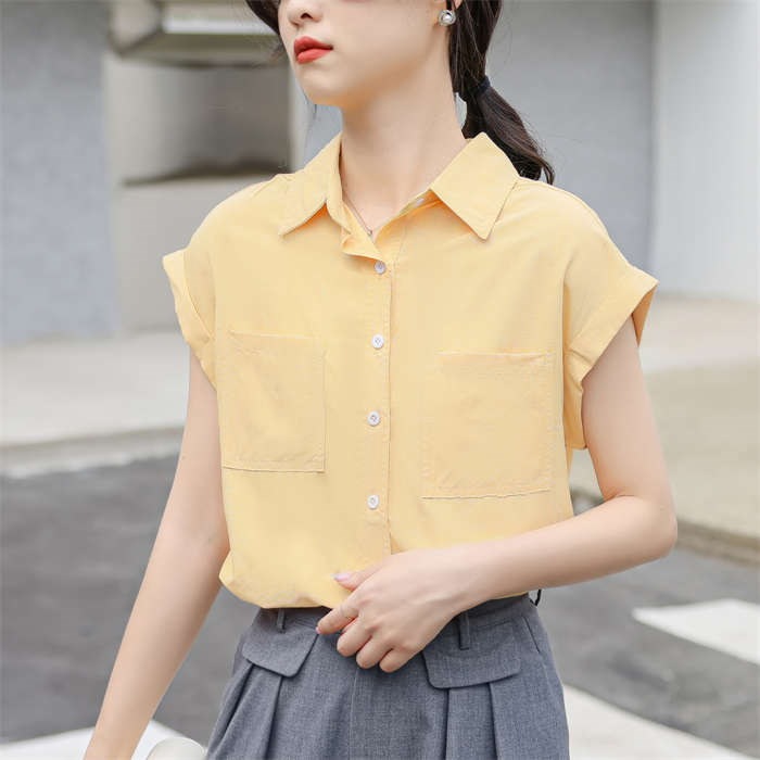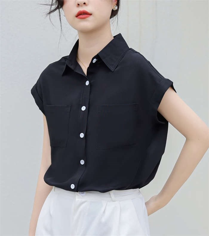 シャツ ブラウス レディース ノースリーブ フレンチスリーブ 袖ロールアップ トップス バックロング きれいめ 大人 カジュアル 仕事 オフィス 襟付き 春 夏 無地 ビジネス 通勤 OL 前開き お