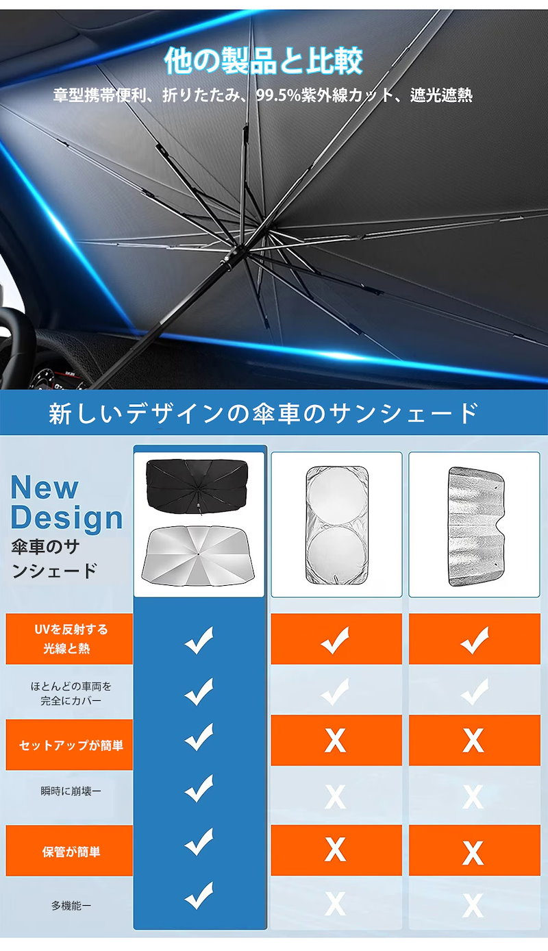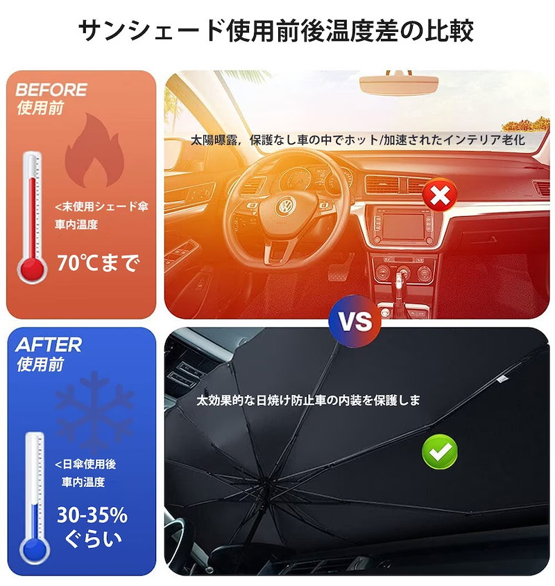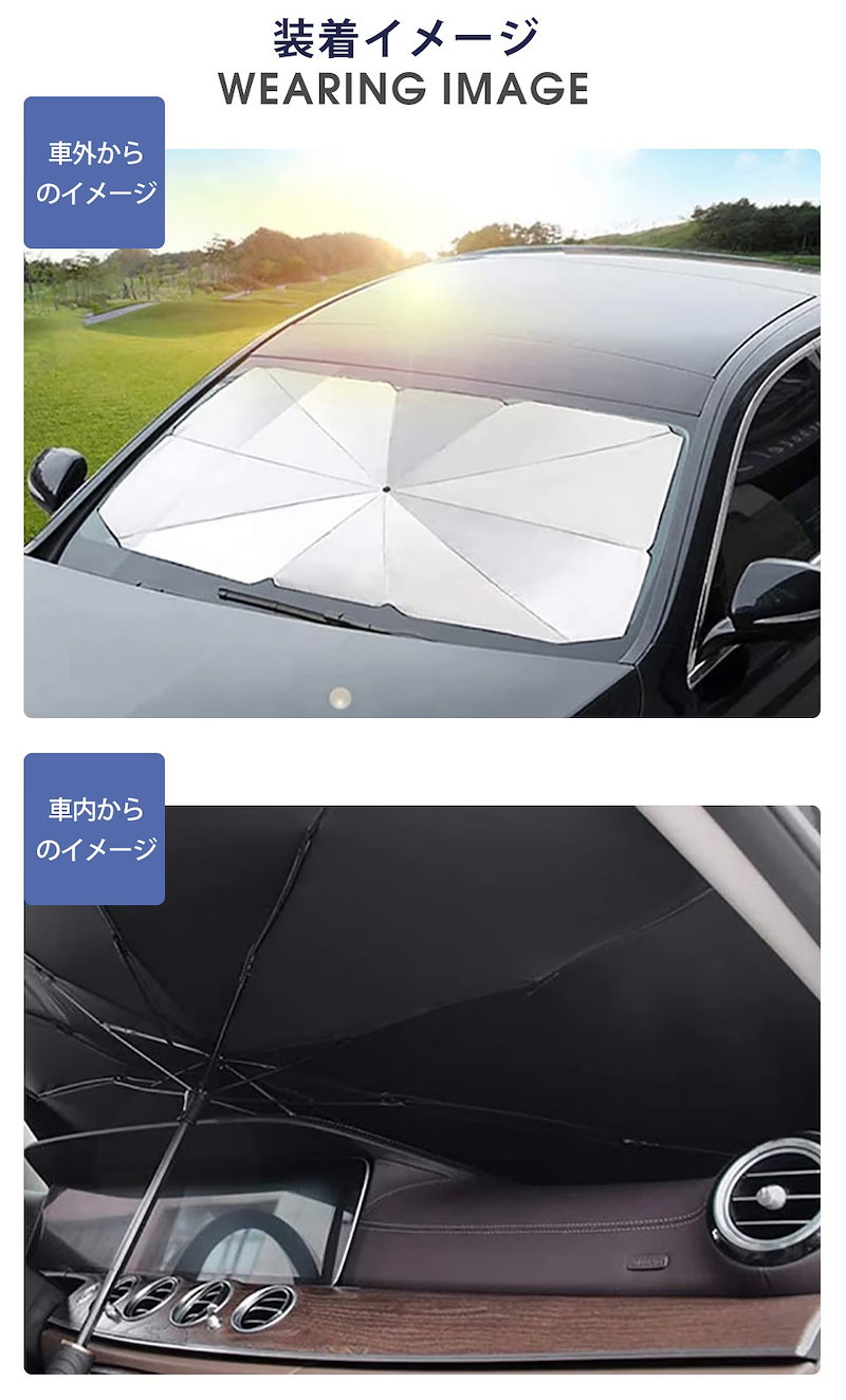 最新型 車用 サンシェード 車 傘式 車用パラソル 車 フロントサンシェード 日よけ 折りたたみ 熱中症対策