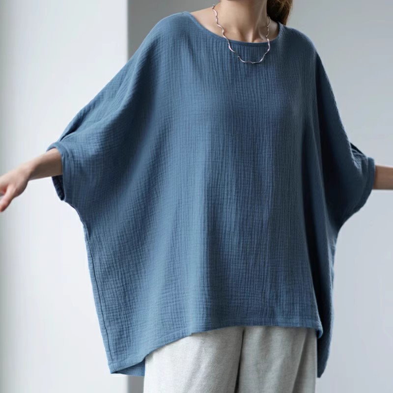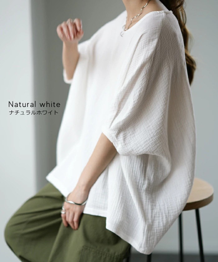 棉麻ブラウス レディース トップス 7分袖 ドルマン レース ドルマントップス 綿 コットン オーバーサイズ 透かし彫り 体型カバー ゆったり