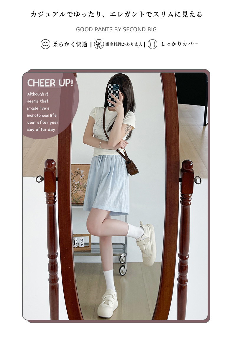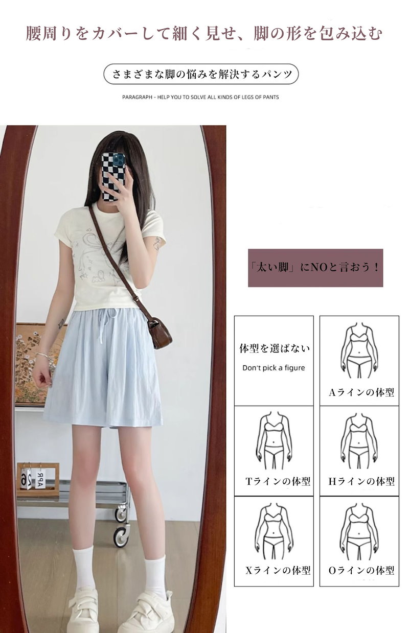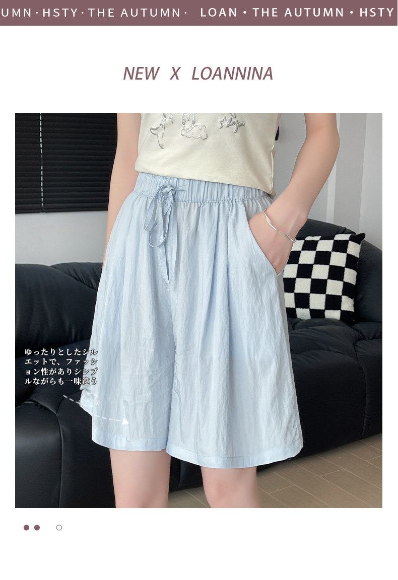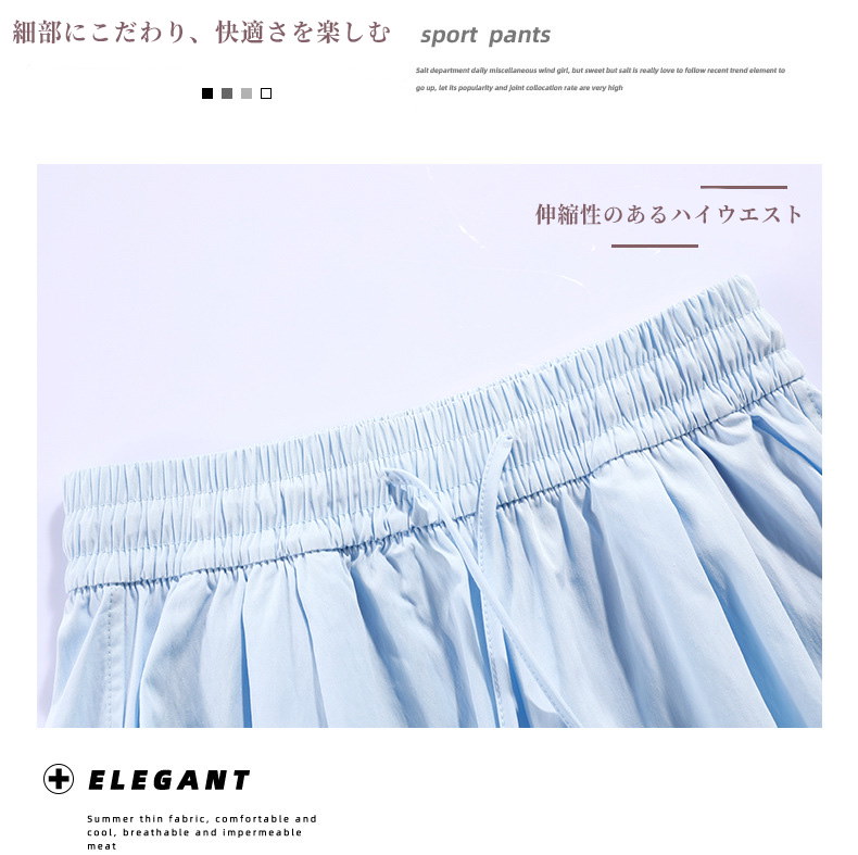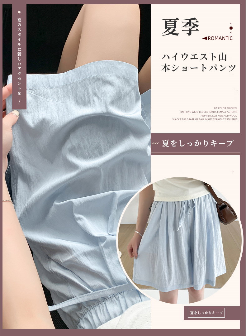 2024 新作 アイスシルク山本ショートパンツ レディース夏用 薄手ハイウエスト 外出用カジュアル ワイドレッグのミドルパンツ スポーツ用5分丈パンツ 快適で涼しい