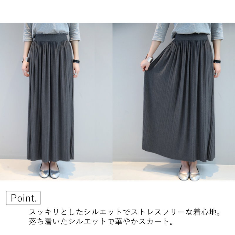 プリーツスカート ロング スカート 夏 春 秋 冬 コーデ iライン ウエストゴム 大人 オフィス かわいい きれいめ 細見え タイト 長め 10代 20代 30代 40代 50代 おしゃれ