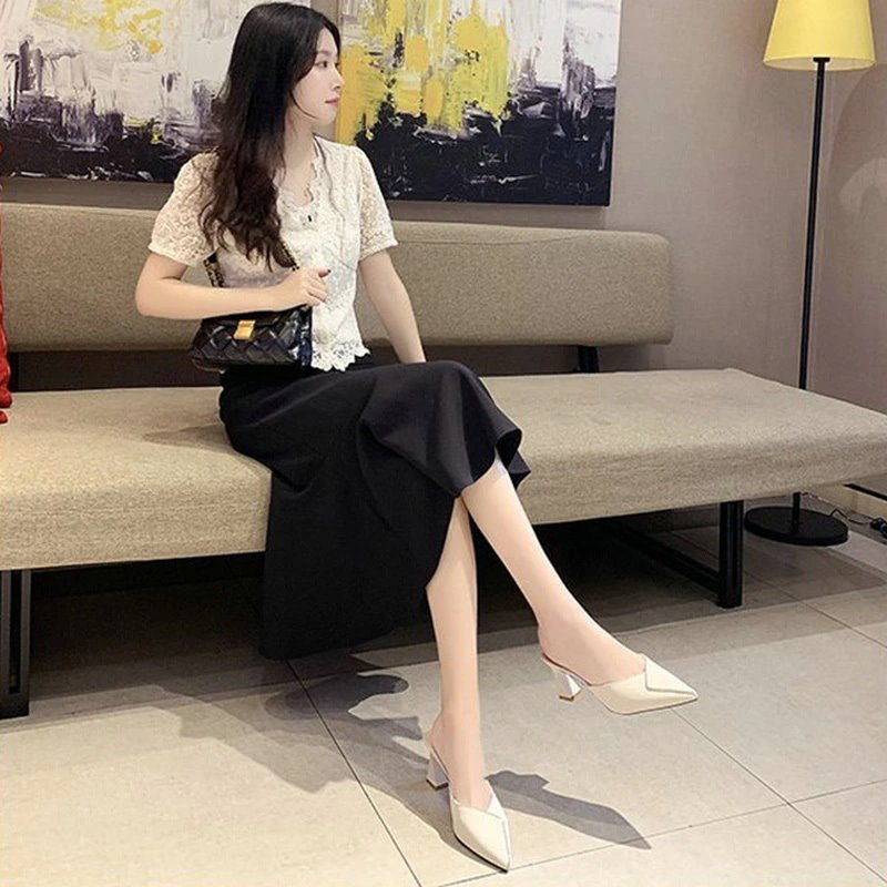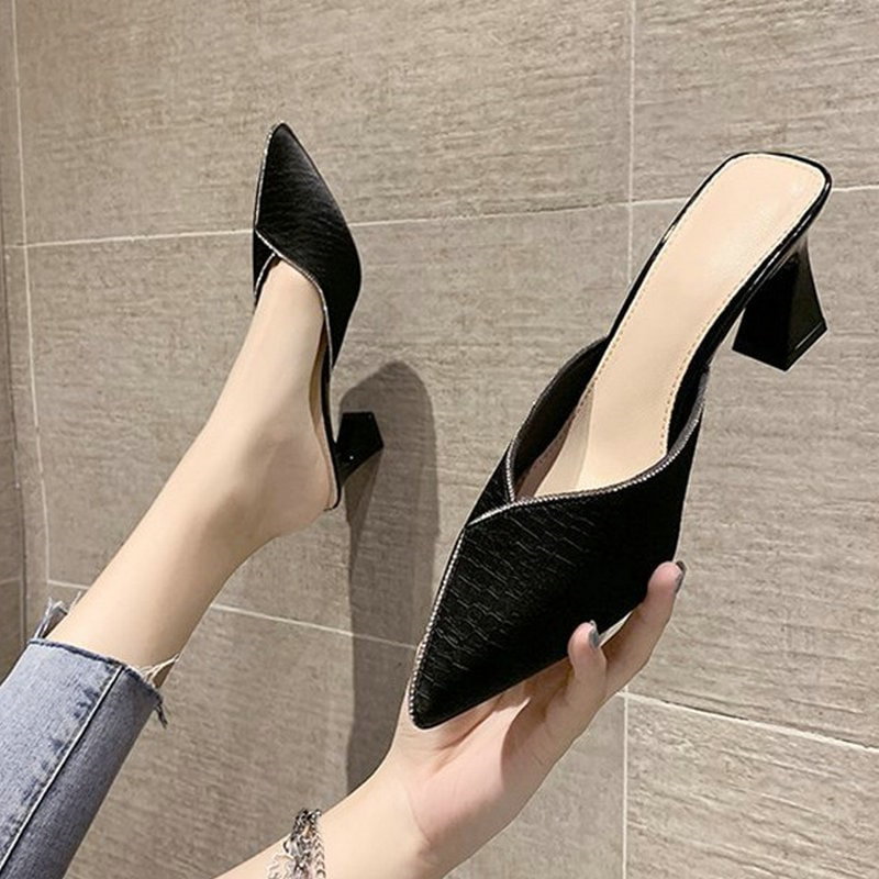楽ちん 歩きやすい ミュール ポインテッドトゥ 厚いヒール ミュール スリッパ サンダル レディース