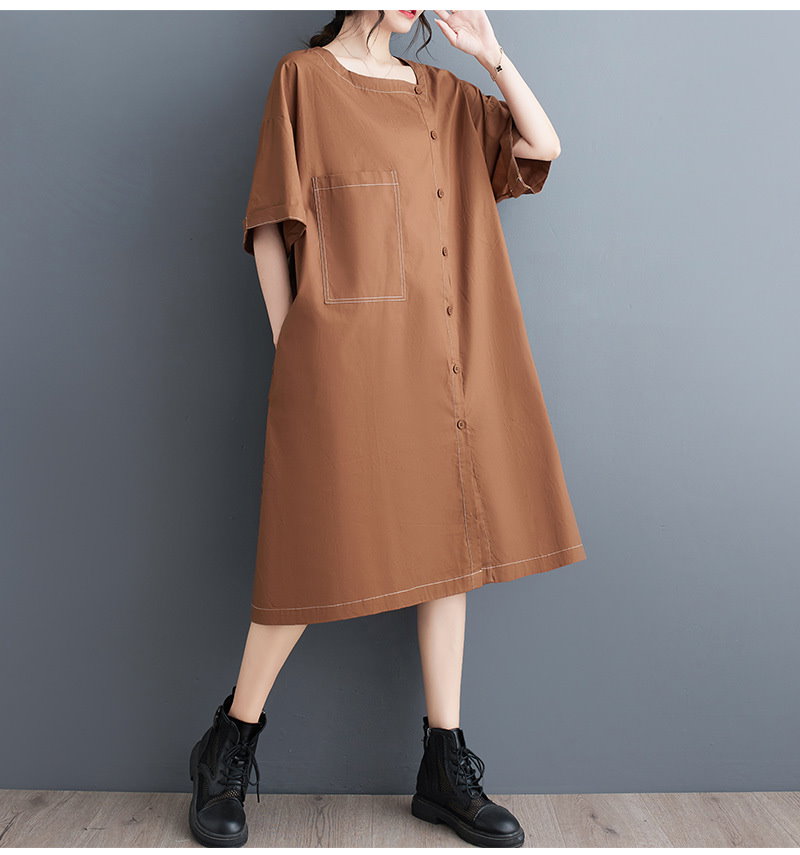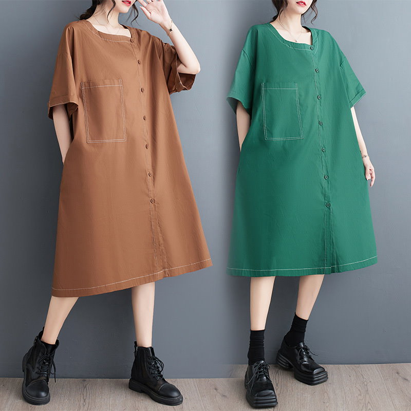 夏の新作 韓国版 ファッション カジュアル 通勤 復古 民族風 ゆとりがある ラージコード 文芸 気質 やせて見える 簡単な エレガント ミディアム シャツ ワンピース JGX523