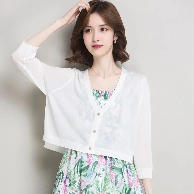 2024新入荷韓国ファッション UVカットカーディガン ベーシックニット紫外線対策 ニットカーディガン 2024新作 透かし彫り ゆったりスウェット トップス薄手 アイスシルクアウター