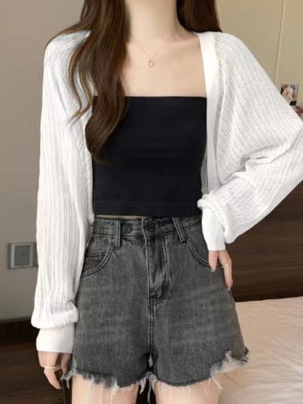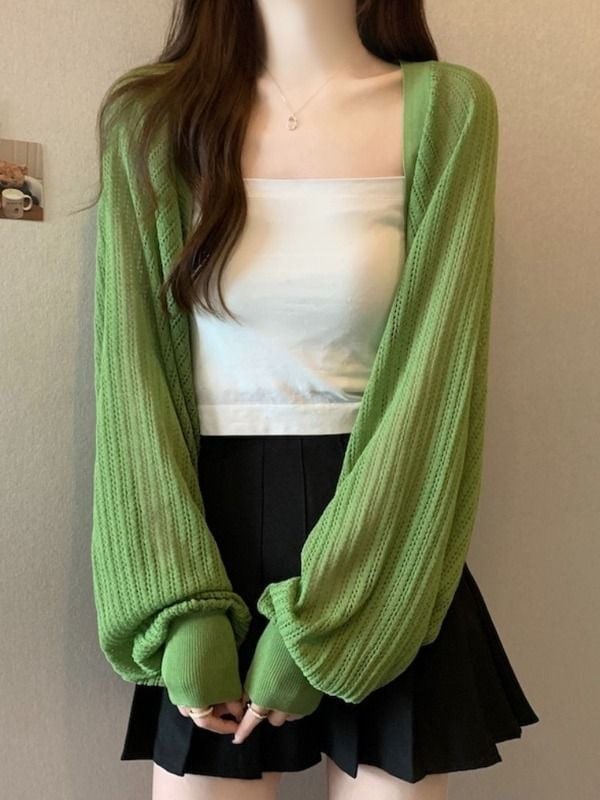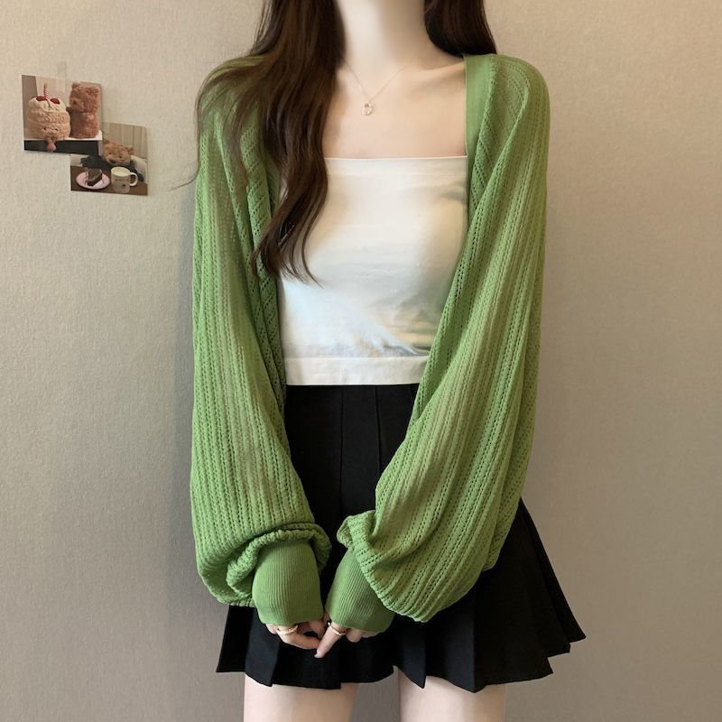 カーディガン ニットの日よけカーディガン夏 紫外線対策 ゆったりオフショルダー