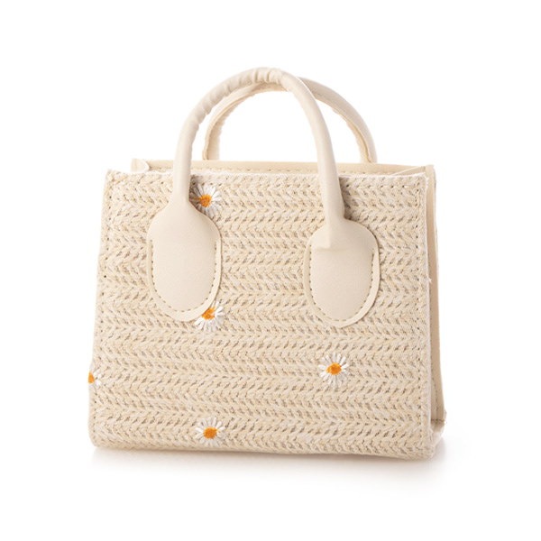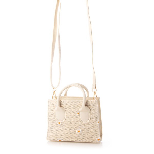 カーキ 小さい バッグ 刺繍 花柄 2WAY 斜めがけ 鞄 ホワイト ハンドバッグ かごバッグ 肩掛け レディース ショルダーバッグ ストロー