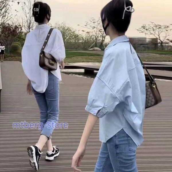 激安 ブラウス 半袖 レディース シャツ トップス 切替 おしゃれ カットソー 重ね着 流行り 夏 Tシャツ 柔らかい チュニック ゆったり