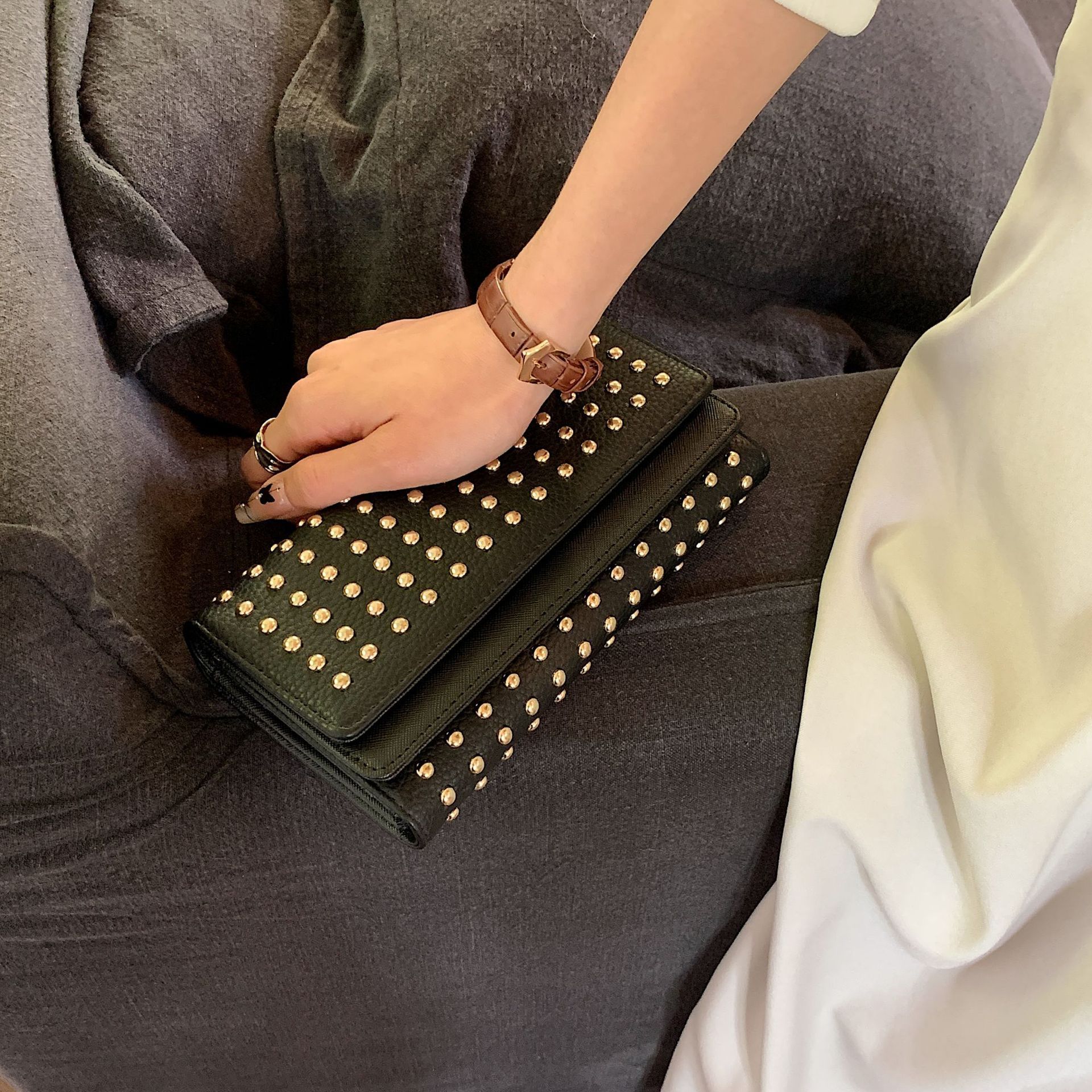 2024新型リベット三つ折りハンドバッグ女性用ハンドバッグロングジッパーゼロ財布大容量コインカードバッグ クラッチバッグ