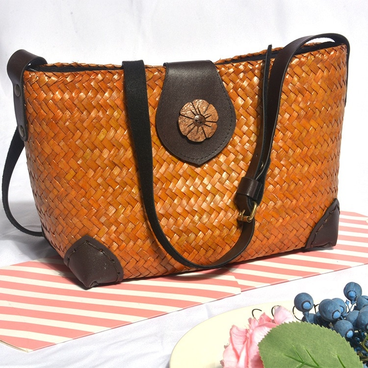 2024新潮ネット赤麦わら編みバッグエスニック風ハンドメイドニットシングルショルダー斜め掛けレディースレトロストローバッグ ハンドバッグ