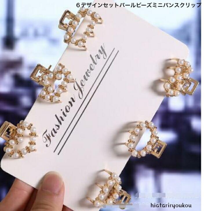 ヘアクリップ6デザインセットパールビーズミニバンスクリップかわいいミニサイズおとな30代40代50代プレゼント大容量 ヘアクリップ
